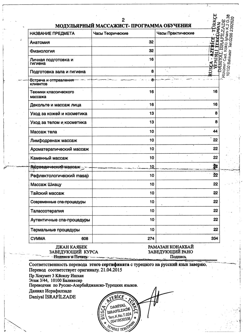 Используется натуральная Spa-косметика для массажа собственного производства (сырье ОАЭ, Великобритания)