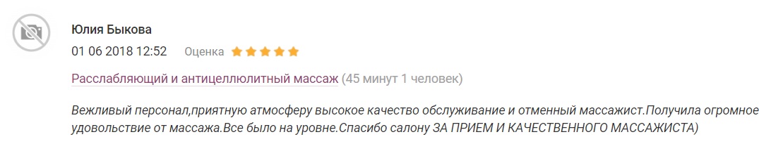 - Отдельный массажный кабинет, одноразовое белье