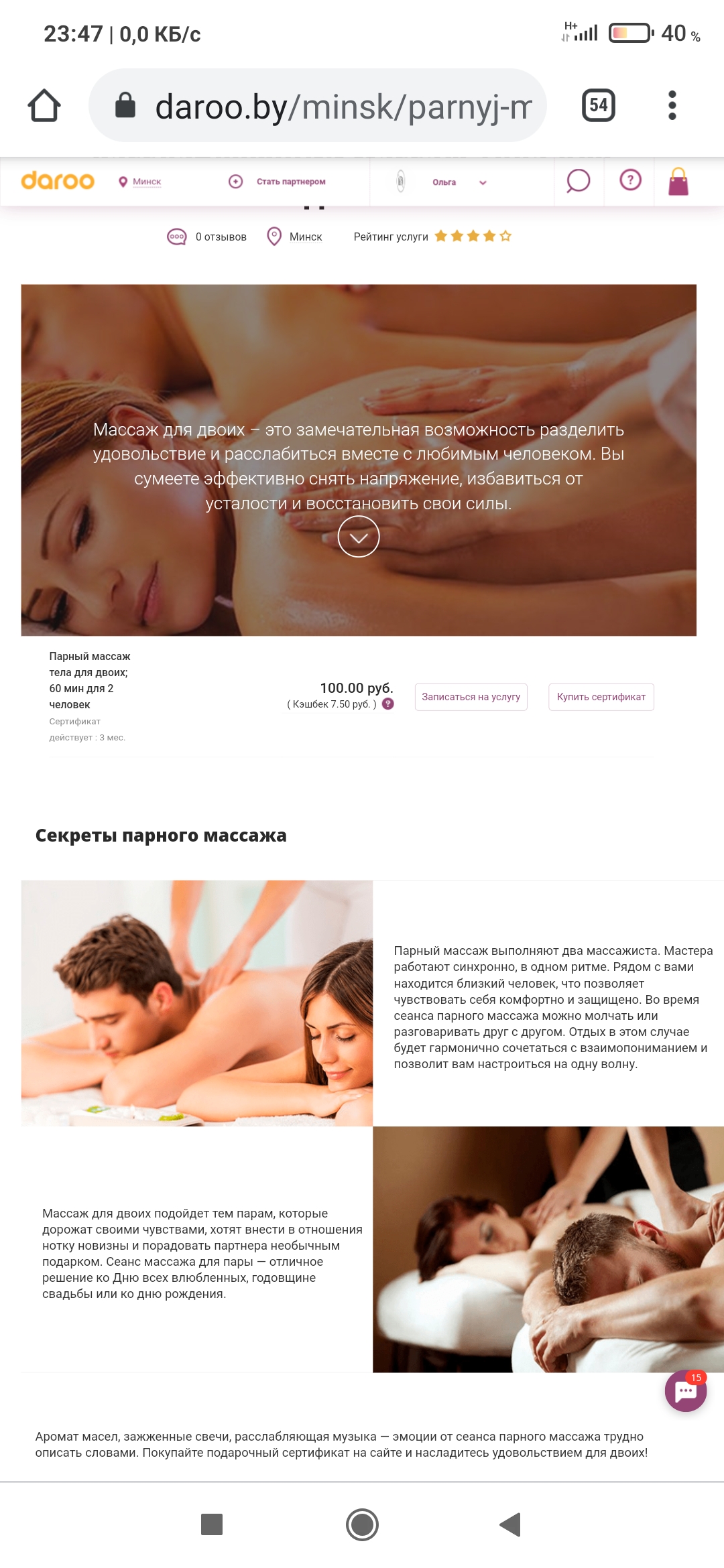 Парный массаж / Массаж для двоих (мужчина + женщина) |
