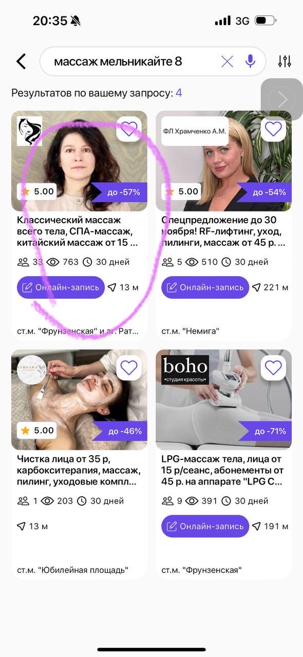 - тиндер-фильтр (массаж или маникюр)
