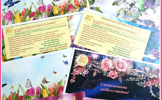 - Оформление сертификата в виде фирменного конверта с нарядной открыткой бесплатно