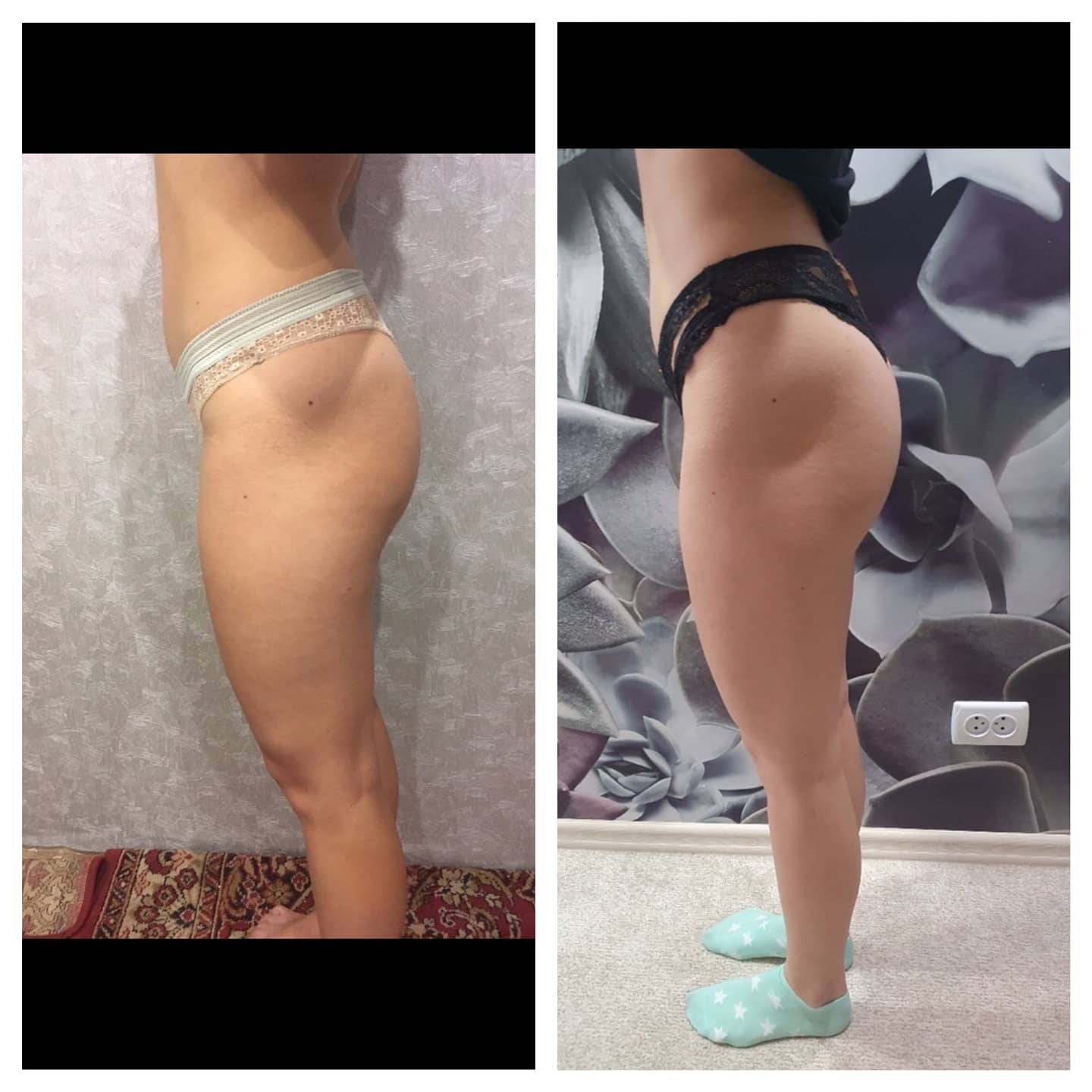 Восстанавливается мышечный тонус, кожа становится гладкой и эластичной, уменьшаются объемы тела. Результат- соблазнительные очертания ягодиц, устранение и профилактика целлюлита, упругая кожа