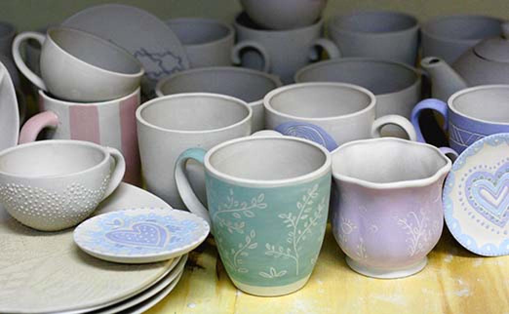 3. Мастер - класс «Кружки-зверюшки».Лепим руками и покрываем изделие ангобом.