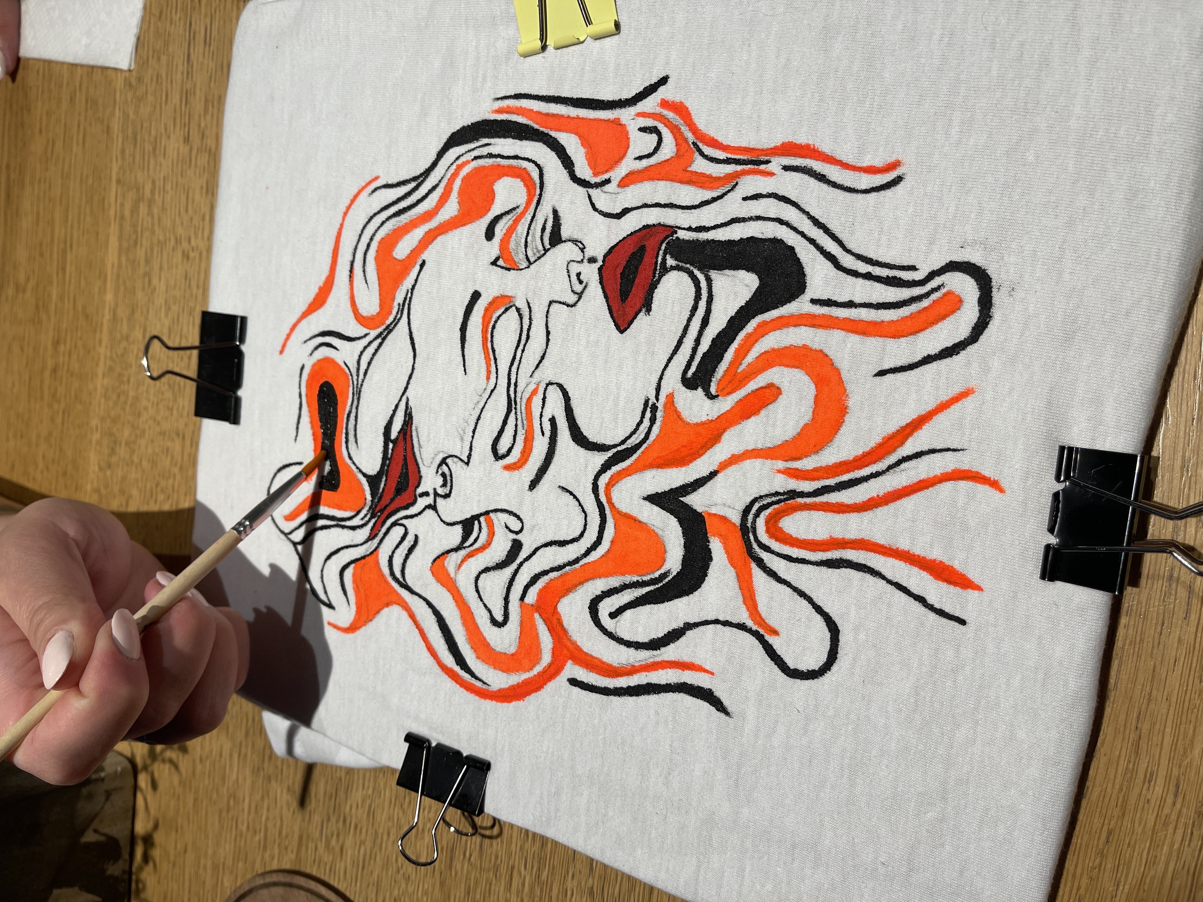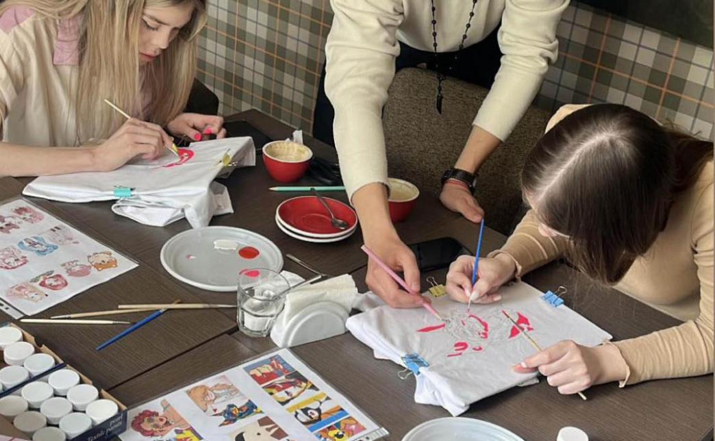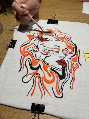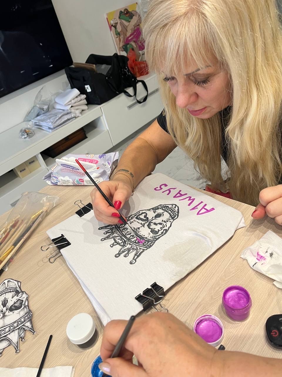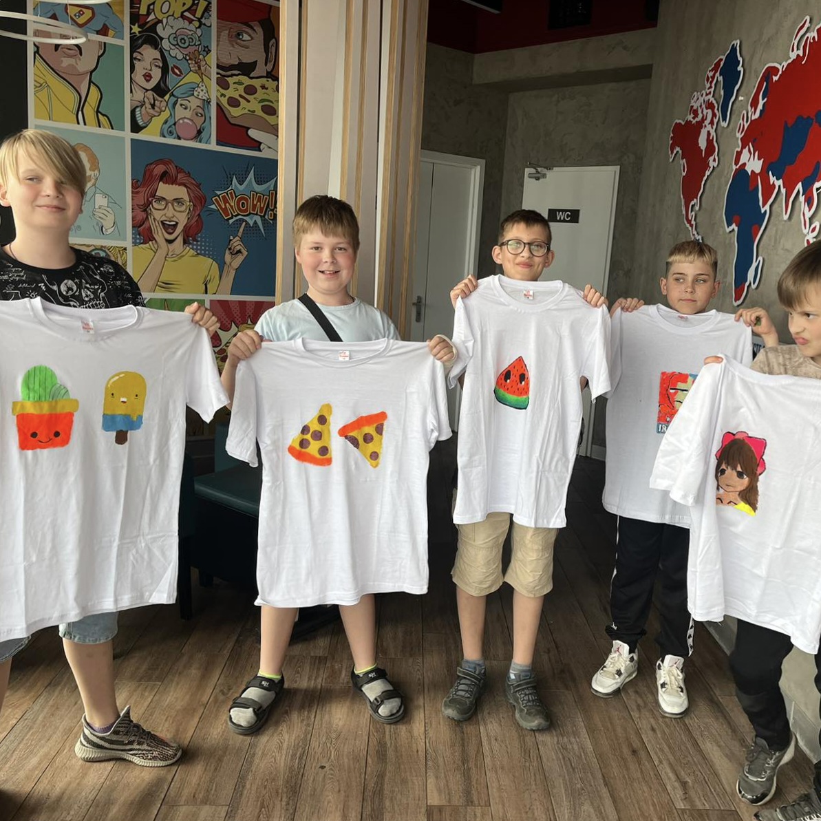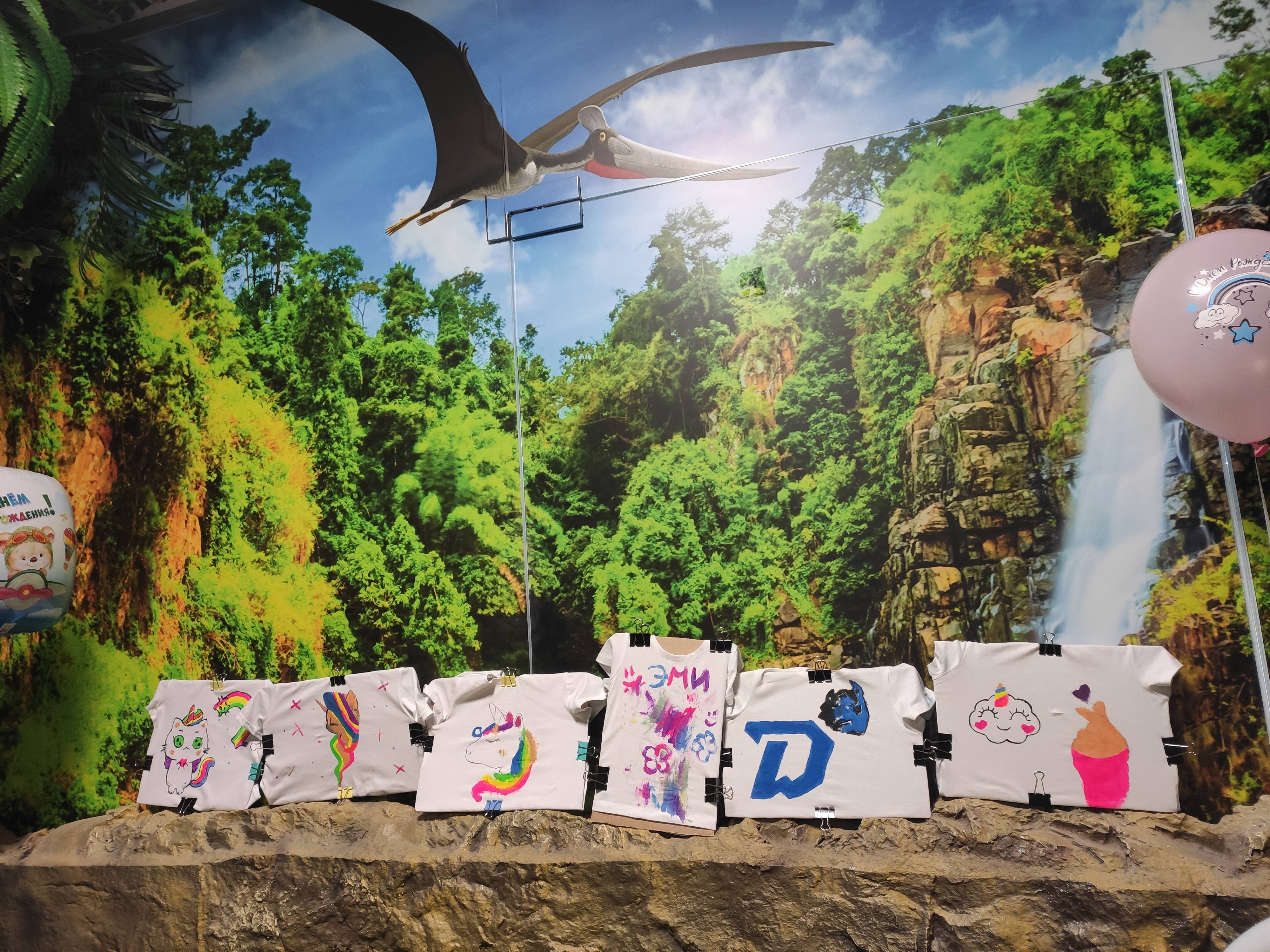 - Каждый участник мастер-класса нанесет на футболку или шоппер понравившийся рисунок с помощью трафарета и особых красок для ткани