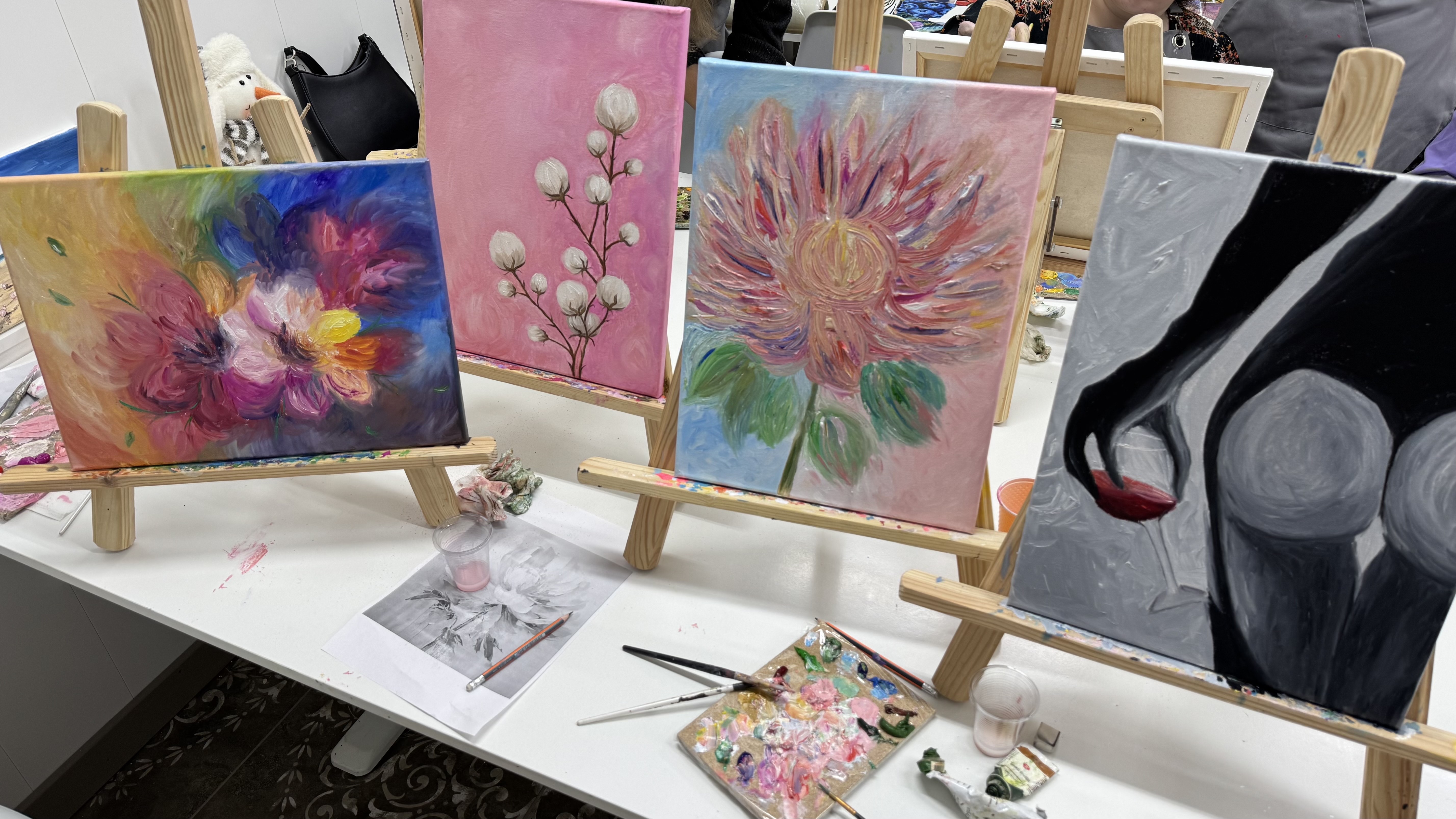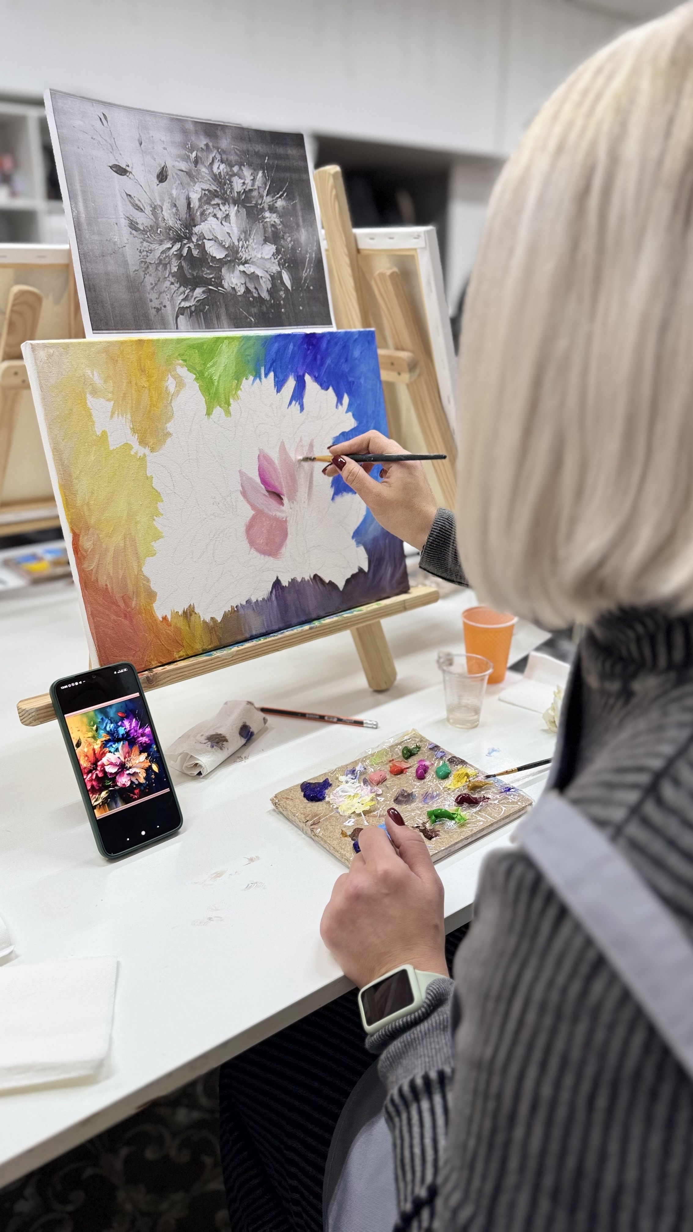 Готовую работу, написанную акрилом Вы заберете сразу после мастер-класса. А работу, написанную маслом через 12-16 дней