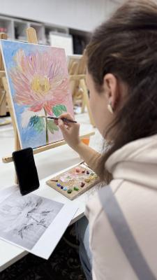 Вы нарисуете настоящем на художественном холсте картину в "Свободной тематике". Эпизод картины можно согласовать заранее с наставником.