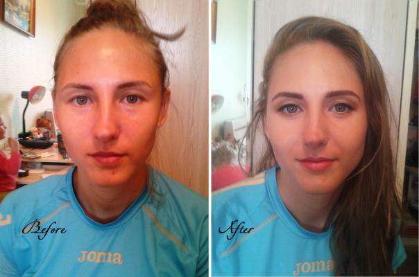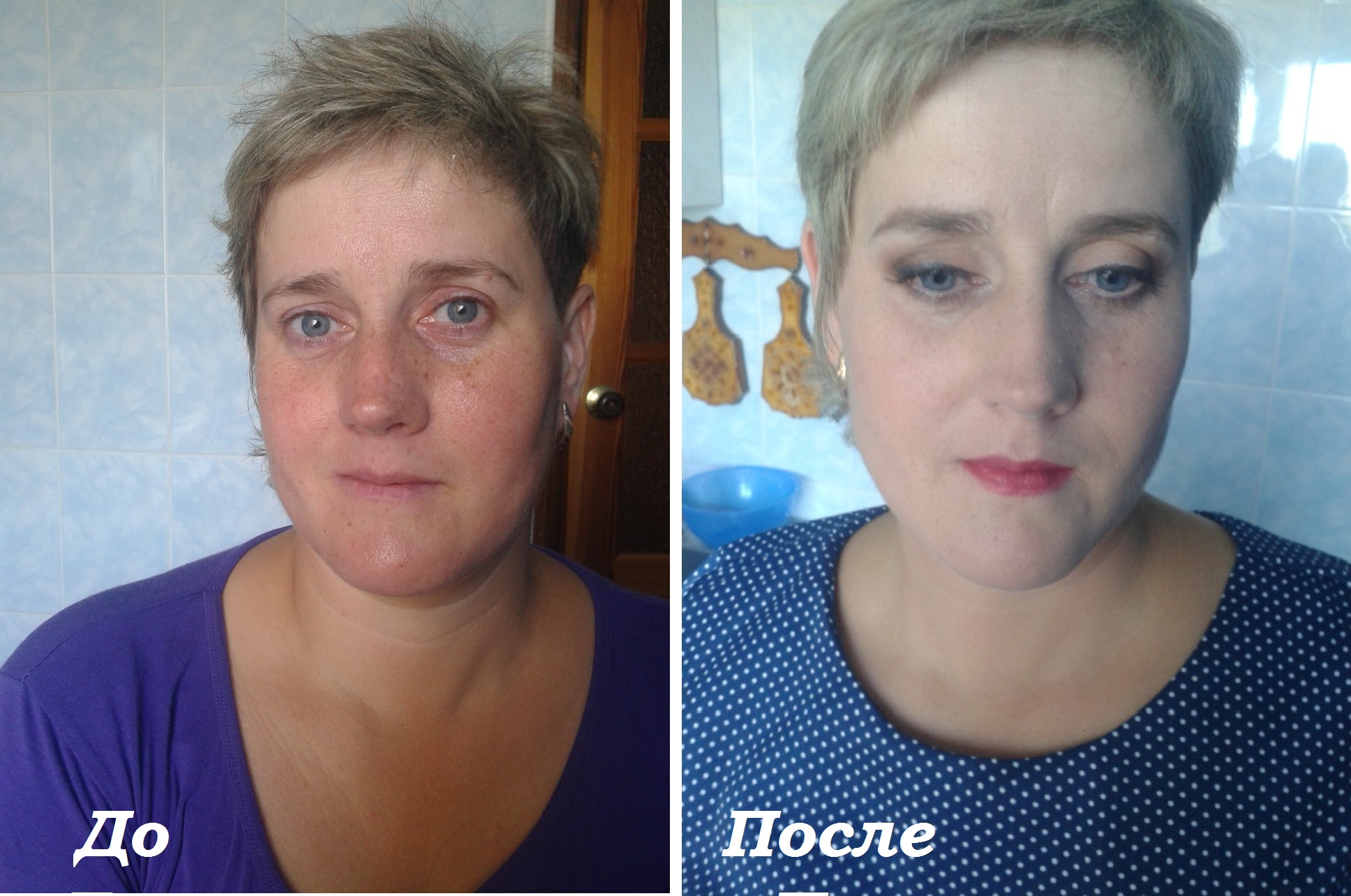 * - Мастер наносит макияж на одну часть лица, а Вы выполняете те же действия на другой половине.