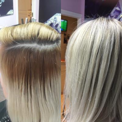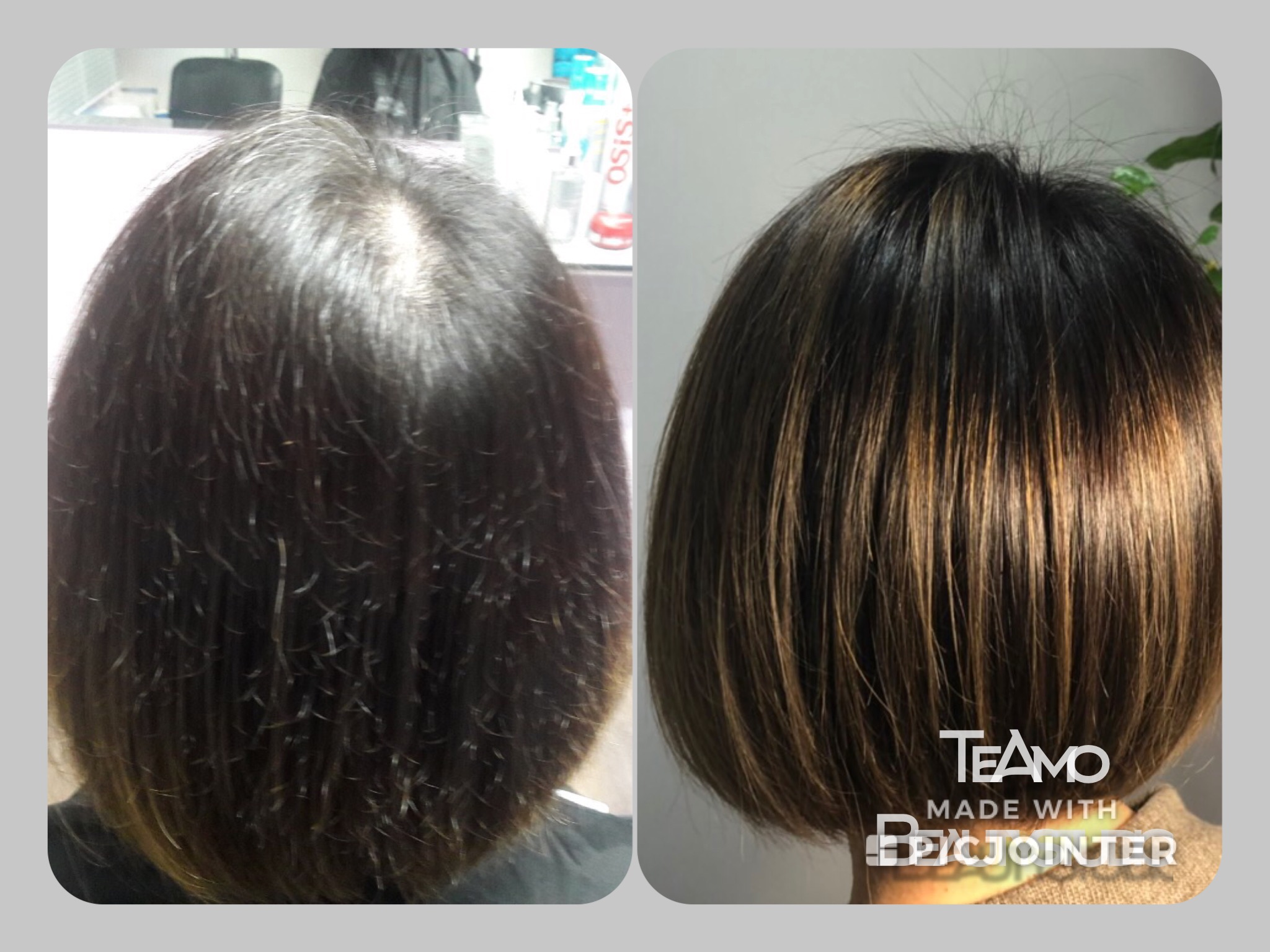 - мелирование + BOTOX терапия волос + укладка волос по форме стрижки: