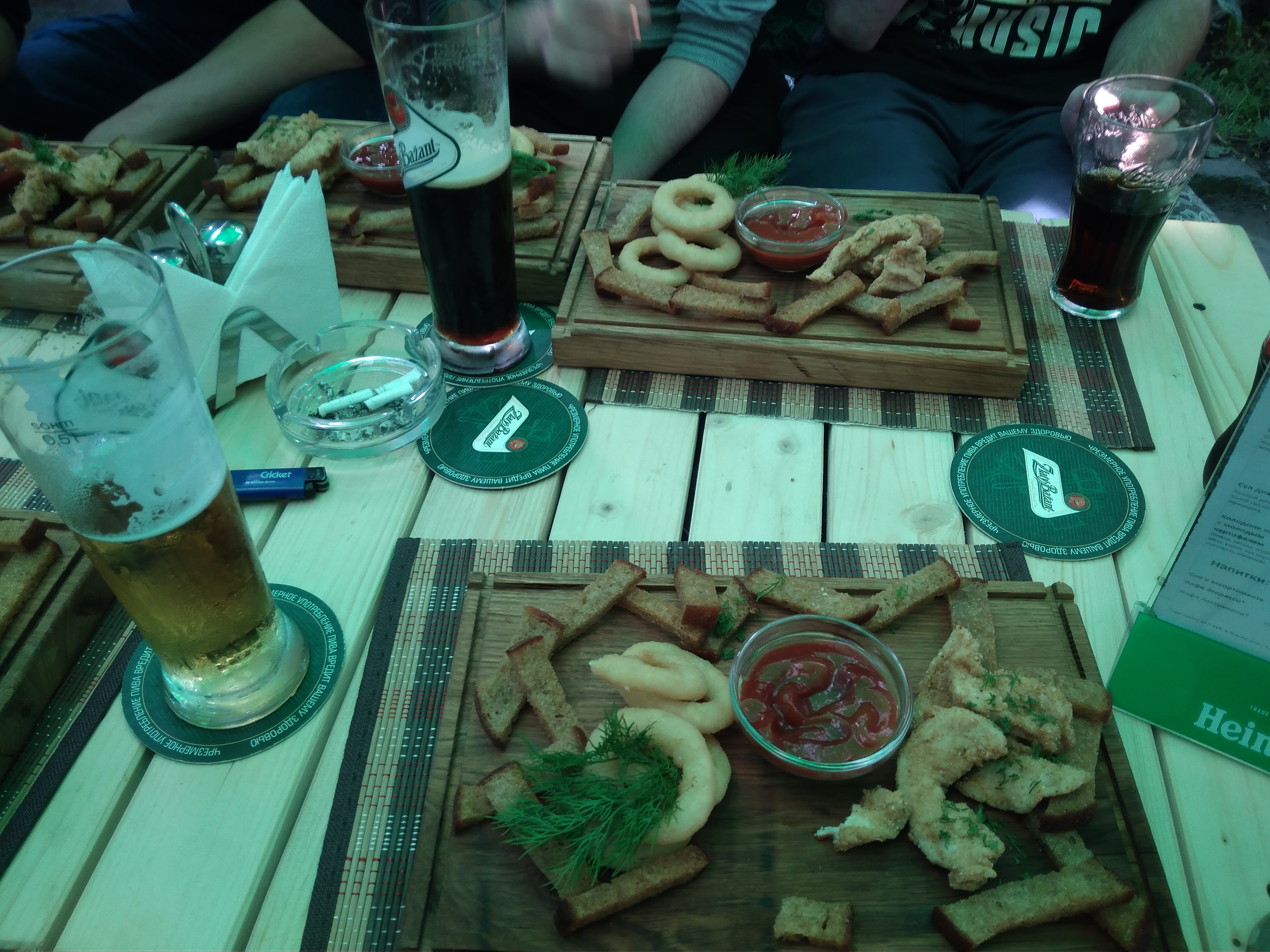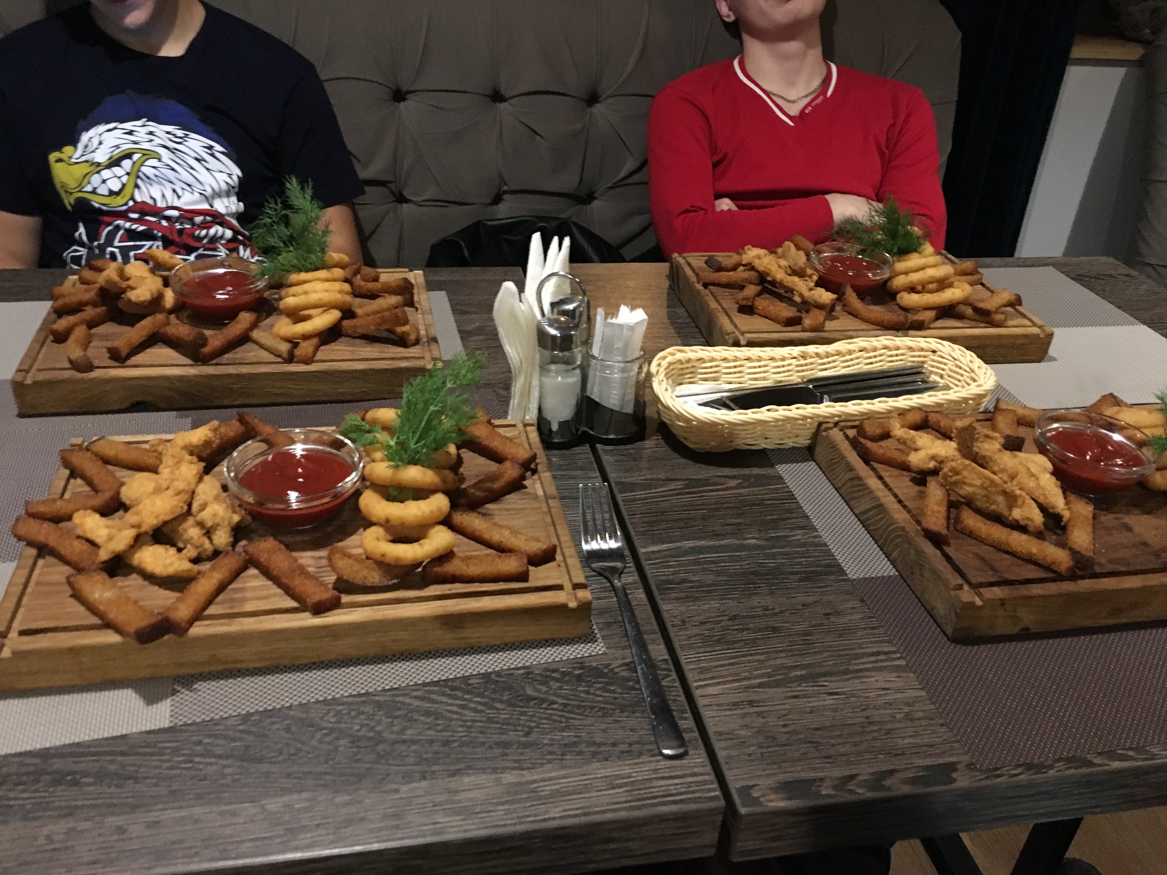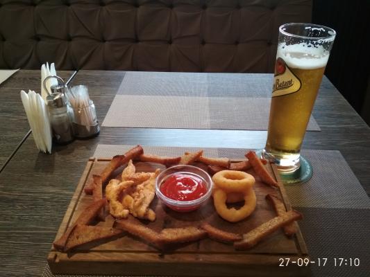 «Пивной сет на компанию» 1400/50/50/50/50/20 г Свиные ребрышки гриль, колбаски гриль, куриные наггетсы, куриные крылышки гриль, луковые кольца, хлебные гренки из белого и чёрного хлеба, картофель по-деревенски, подаётся с соусами – барбекю, чесночный, сырный, горчичныйнные из сыра чеддер в беконе и в хрустящей панировке |