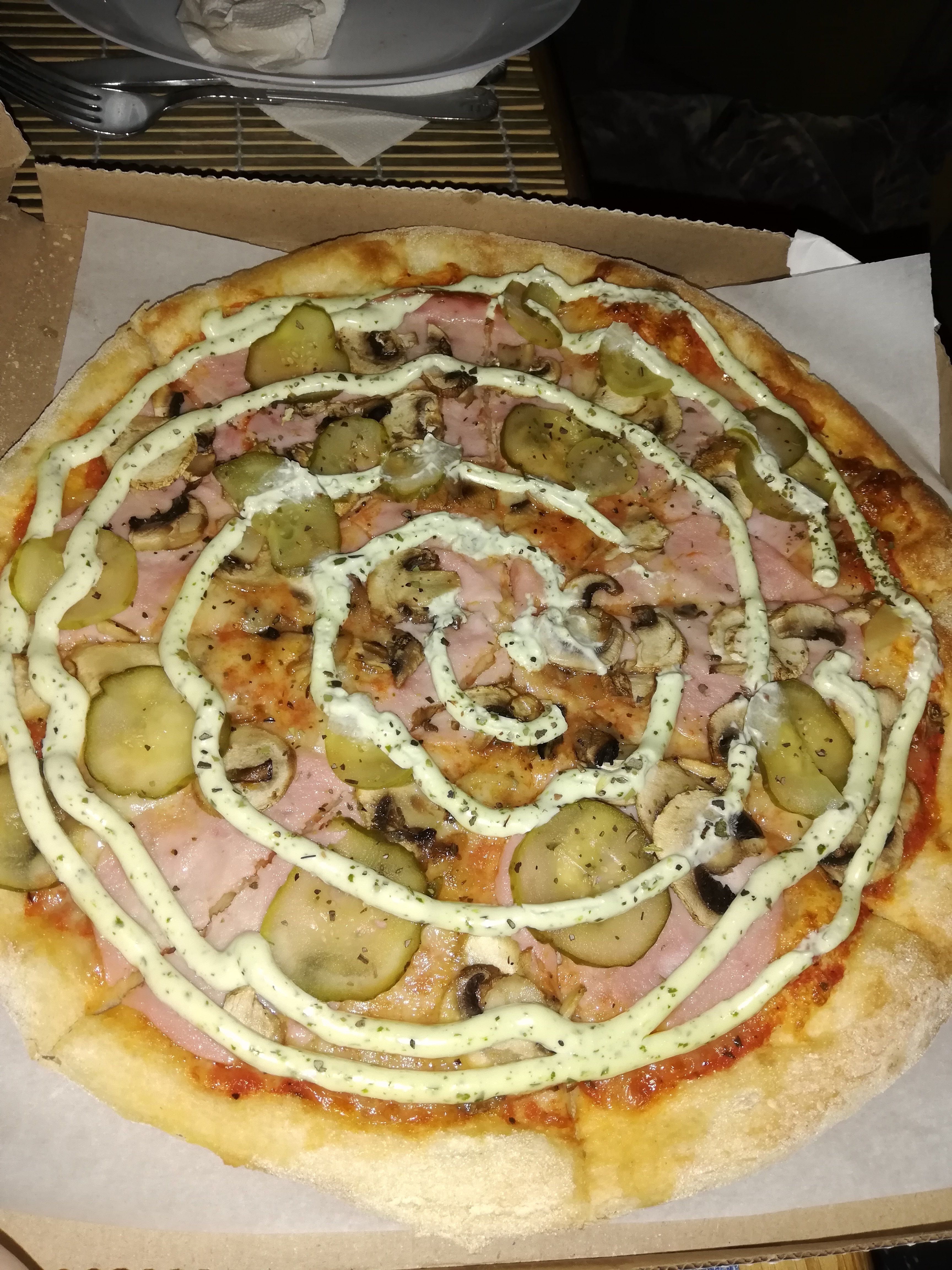 Заказывали 4 пиццы Суприм,Домашняя,Грибная ,Цыпленок BBQ. В итоге самая дорогая Суприм совсем плоха , непонятный соус и колбаса ,вкуса никакого ужас.Грибную спасли грибы , но их так мало. Цыпленок BBQ весь вкус перебивает лук ,начинки мало. Домашняя более или менее съедобная. Ещё заказывали плов с бараниной , баранина очень напоминала вкус говядины.Вообщем мне не понравилось .