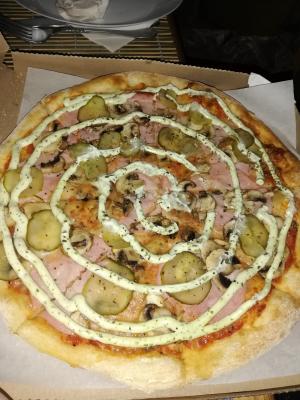 Очень понравилась пицца Домашняя и Цыпленок BBQ, сочные и вкусные. Тесто средней толщины. Греческая не понравилась, очень сухая и мало начинки. Единственный минус, что затянули с приготовлением. Обещанные 20-30 минут растянулись на целый час, был самовывоз.