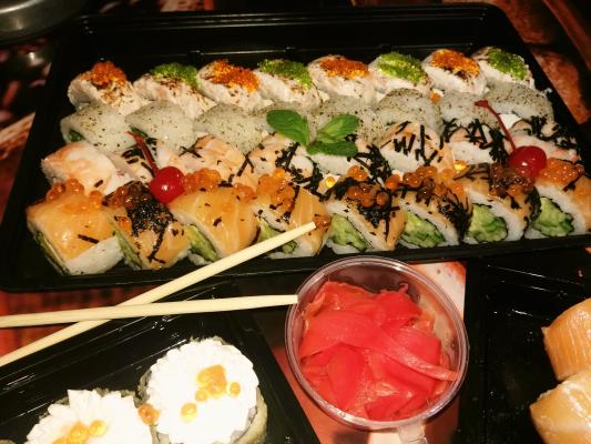 заказывала на свой ДР сет Топовый,шашлычный сет и пиццу цыпленок BBQ.суши большие и вкусные,пицца очень вкусная(брала ребенку,ребенок в восторге!),шашлычный сет тоже порадовал разнообразием шашлыков,достойно и вкусно!доставка была во время.спасибо :-)