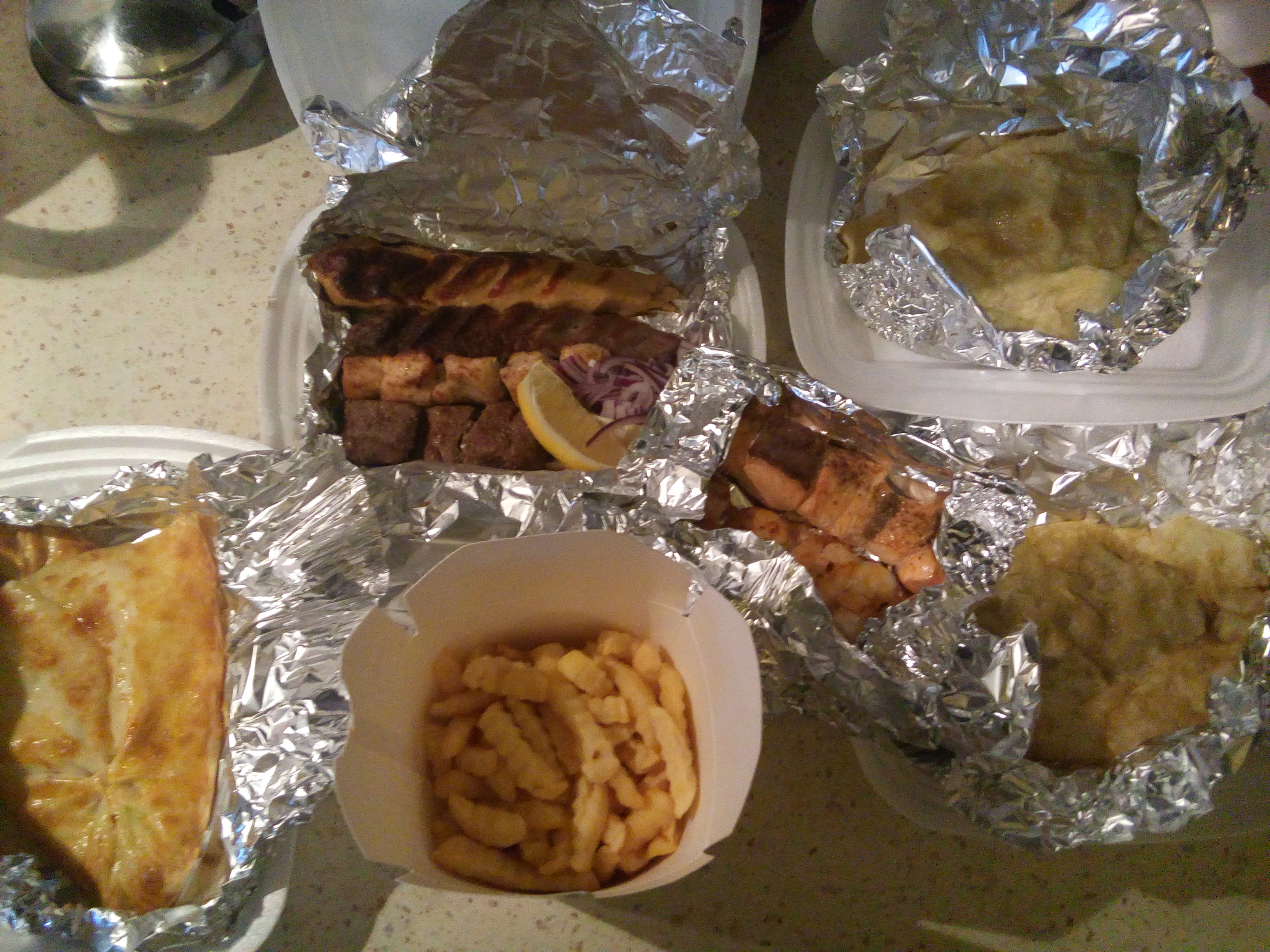 Брали ассорти-шашлык, за раз всё не съесть порция на 2х 2дня:). Баранина и рыба оказались вообще чума, хотя в тоже время креветки непрожарены. Чибуры вкусные, но доставку не держат - потекли.