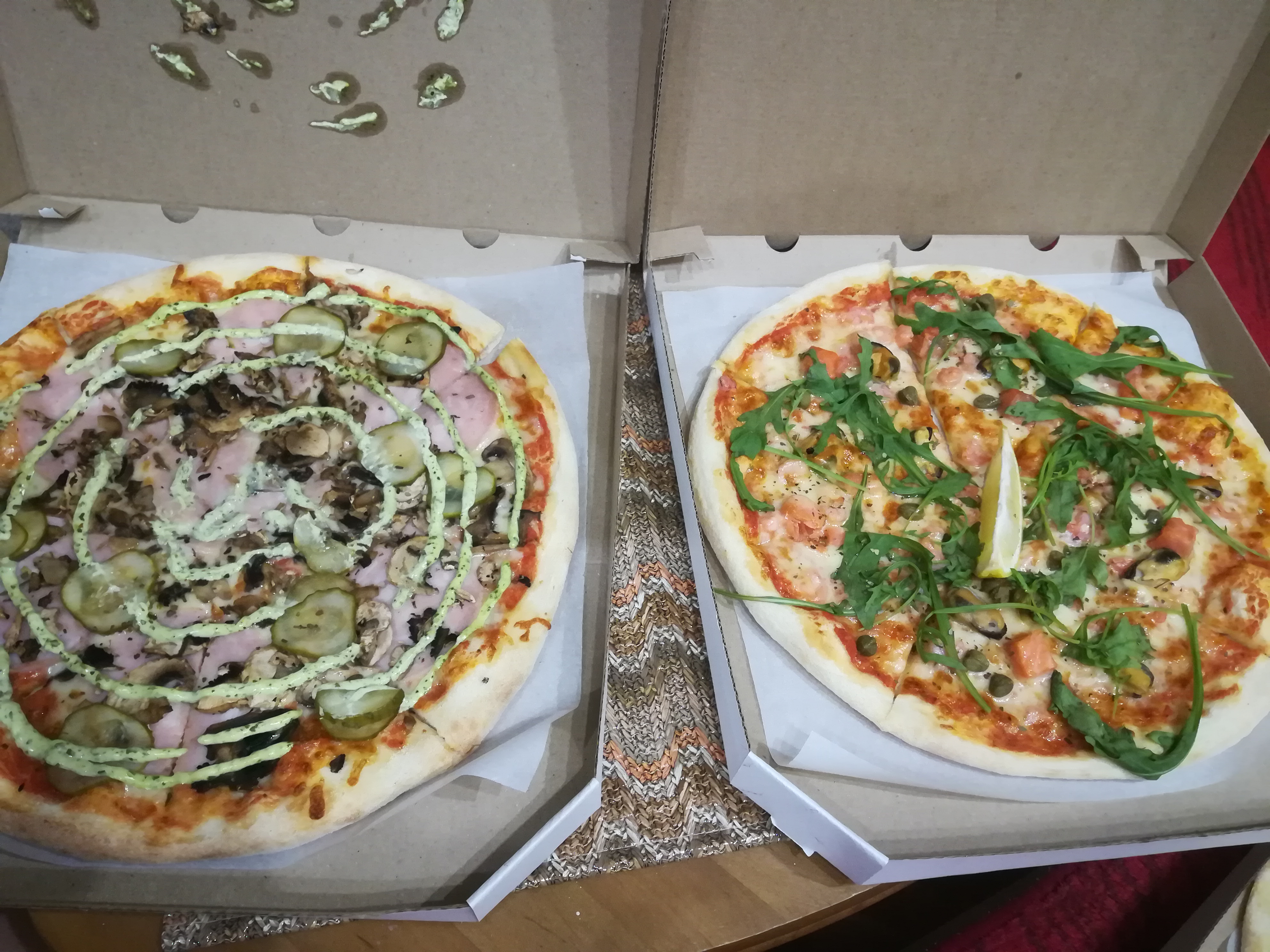 Круто! заказали 3штуки-сырный цыпленок,домашнюю и с морепродуктами! только привезли,тепленькие и вкусные!сырный цыпленок самый вкусный!ну и морепродукты)тесто тонкое!буду ещё заказывать!а девушка,что принимала заказ -умничка,позитивная,было приятно общаться!доставка очень оперативная!