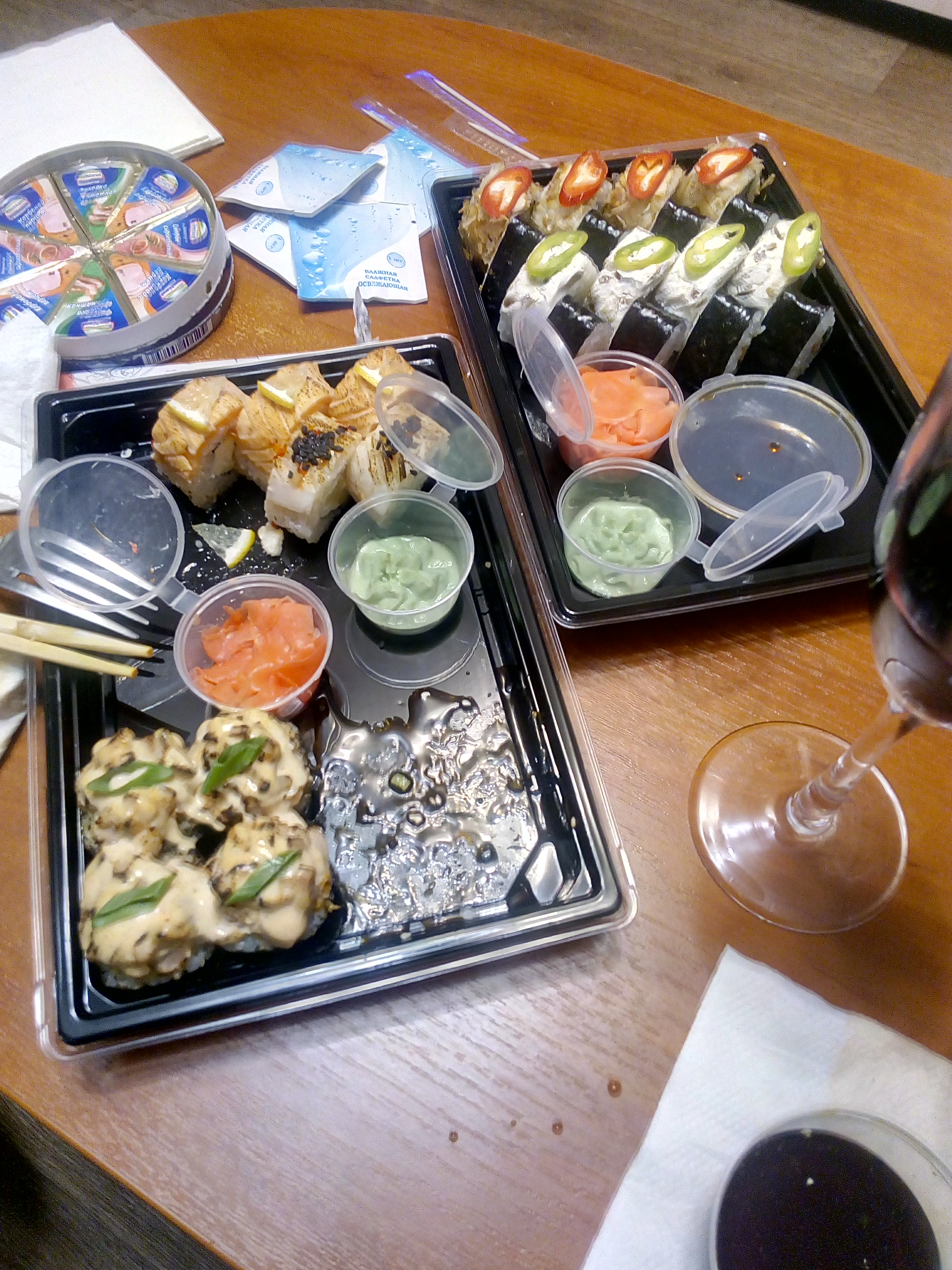 Спасибо большое за вкусный ужин! И спасибо обаятельному курьеру за своевременную доставку! Суши, пицца и салаты Цезарь великолепны! Салаты даже не успели сфоткать, смели за пару минут))))в следующий раз обязательно опять к вам!