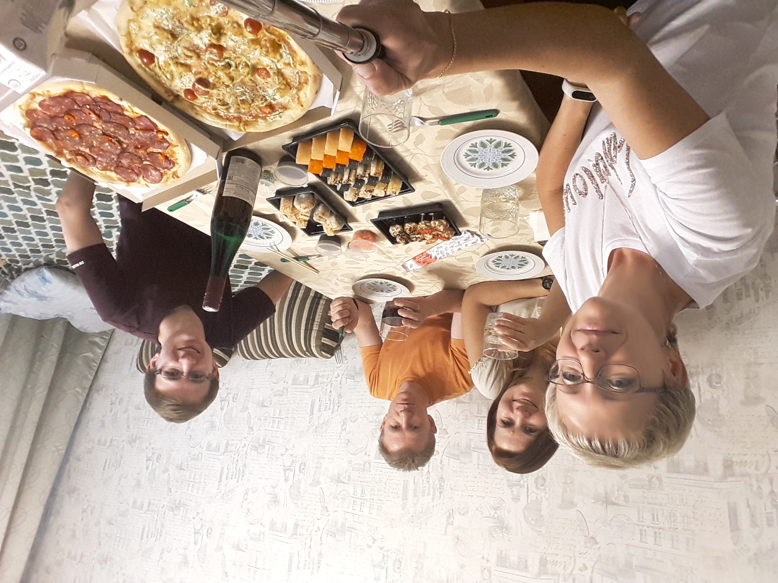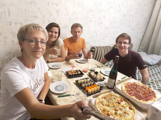 Здравствуйте, впервые решила оставить отзыв для любителей делать заказ по отзывам людей, потому, что Ну очень осталась довольна !)огромное спасибо за отлично выполненный заказ!!! Вчера решили отметить День знаний с Вами,  и Вы полностью оправдали наше доверие, все отстались сыты!) Вкусный Сэт, не рисовый как у многих, вкусная не пересоленная рыбка, несколько видов соуса с красивым оформлением, палочки к роллам, супер! Пицца - просто объедение , хоть я предпочитаю пиццу собственного приготовления, но скажу честно,Ваша пицца Домашняя очень вкусная. Пышное не сырое тесто, ветчина прям кружками на всей пицце, грибы, соус и сыр в меру, даже бортики съели))) А десерт - просто загляденье!) Впечатлил всех своей красотой и вкуснотищей))) Невероятно нежный, свежий, а ещё и сливки к нему положили)! Ребенок остался доволен, как впрочем , и взрослые. Отдельная благодарность за своевременность доставки и красивую подачу , а именно оформление! Плюс ко всему много одноразовых влажных салфеток- очень кстати! Зубочистки, сухие салфетки, - одним словом, Ребята, надеюсь, Вы будете продолжать работать в этом же духе!) Успехов Вам, побольше заказов, а мы, в свою очередь, останемся Вашим клиентом!)))