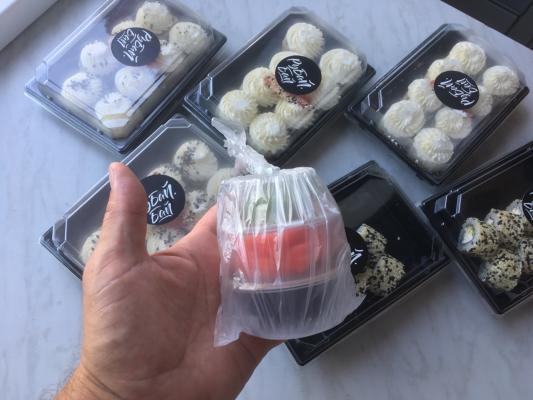 - Дополнительно оплачивается: контейнер для плова 0,28 руб, контейнер для соуса 0,12 руб, контейнер для супа 0,12 руб, ланч-бокс 0,16 руб, контейнер для суши маленький 0,37 руб, контейнер для суши большой 0,65 руб, упаковка для пиццы 0,45 руб.