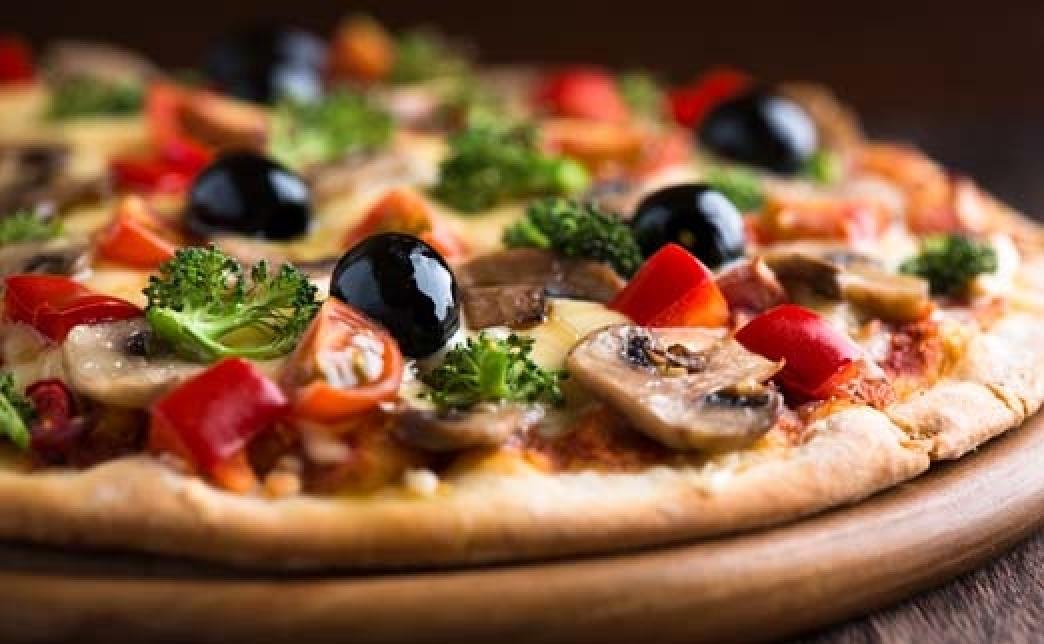 Состав: тесто дрожжевое, сыр моцарелла, соус для пиццы, филей в/к, колбаса с/к, шампиньон свежий, помидор свежий, шпинат св/м, фасоль стручковая, маслины, оливки, зелень