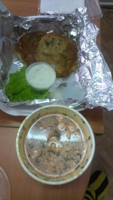 Ну и непонятный разбитый обед: один сотрудник остался без борща, трое ждали новую пиццу.