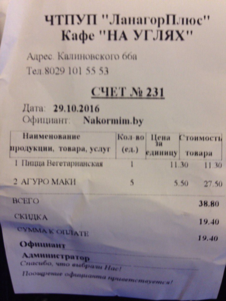 - Промокод дает право на скидку 50% на все пиццы в меню от Nakormim.by