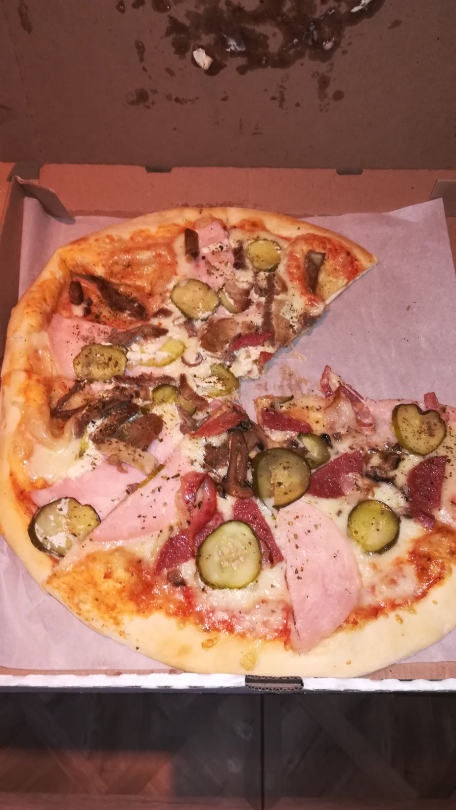Привезли на час позже. Естественно пицца была холодной, но после микроволновки съели с большим удовольствием.