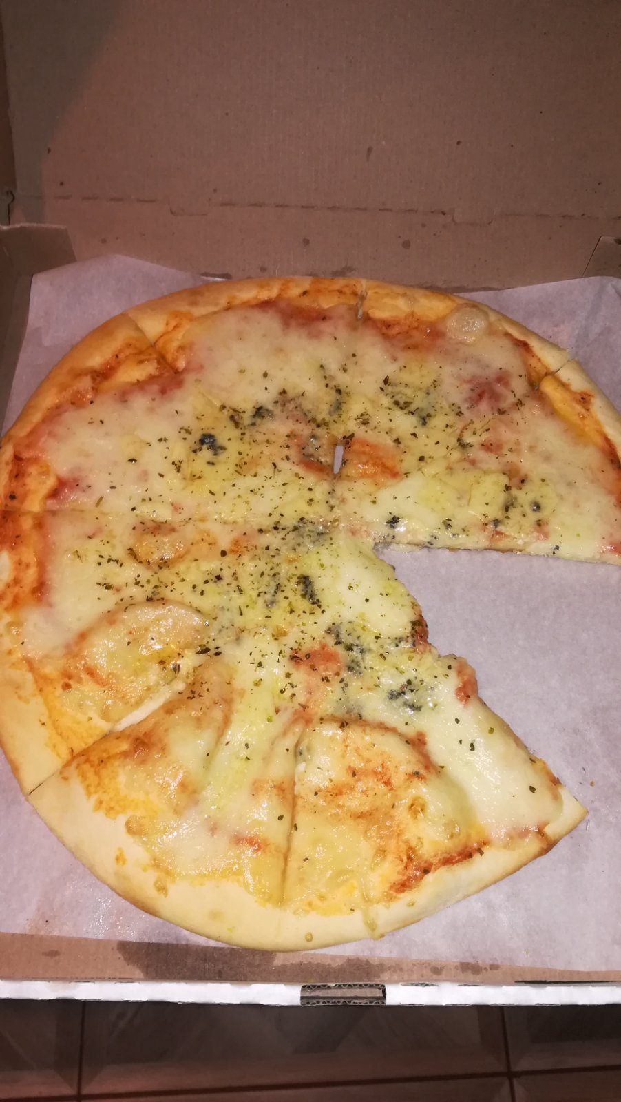 Кроме этого пицца была холодная и сухая, а всё тесто снизу было в  слое муки. Никому не рекомендую, лично мне пицца через 2:25 мин. не нужна и бесплатно и никакая стоимость не может быть оправданием.