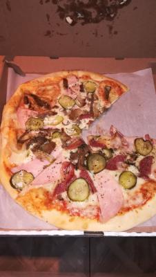 Ужасная пицца, закладка ингредиентов настолько маленькая, что ближе к краю даже сыра и томатной пасты нет, про колбасу или фарш я вообще молчу, потому что на всю пиццу ее можно посчитать на пальцах одной руки!!! Не советую это заведение!!! Первый и последний раз там заказывал.
