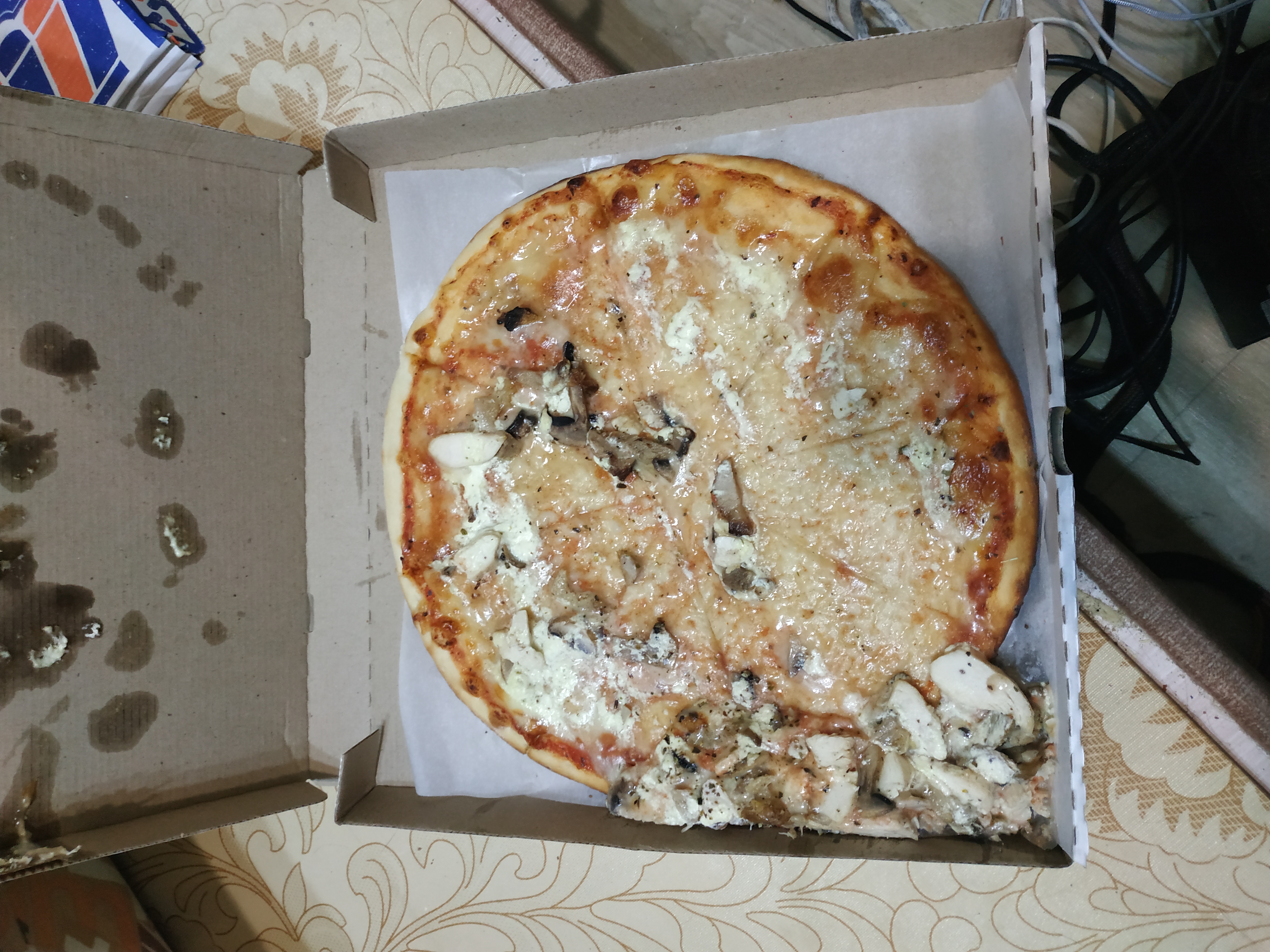 Пицца хорошая, вкусная, свежая, тёплая. Своих денег стоит. Курьер вежливый, всегда вовремя. Заказываем постоянно.