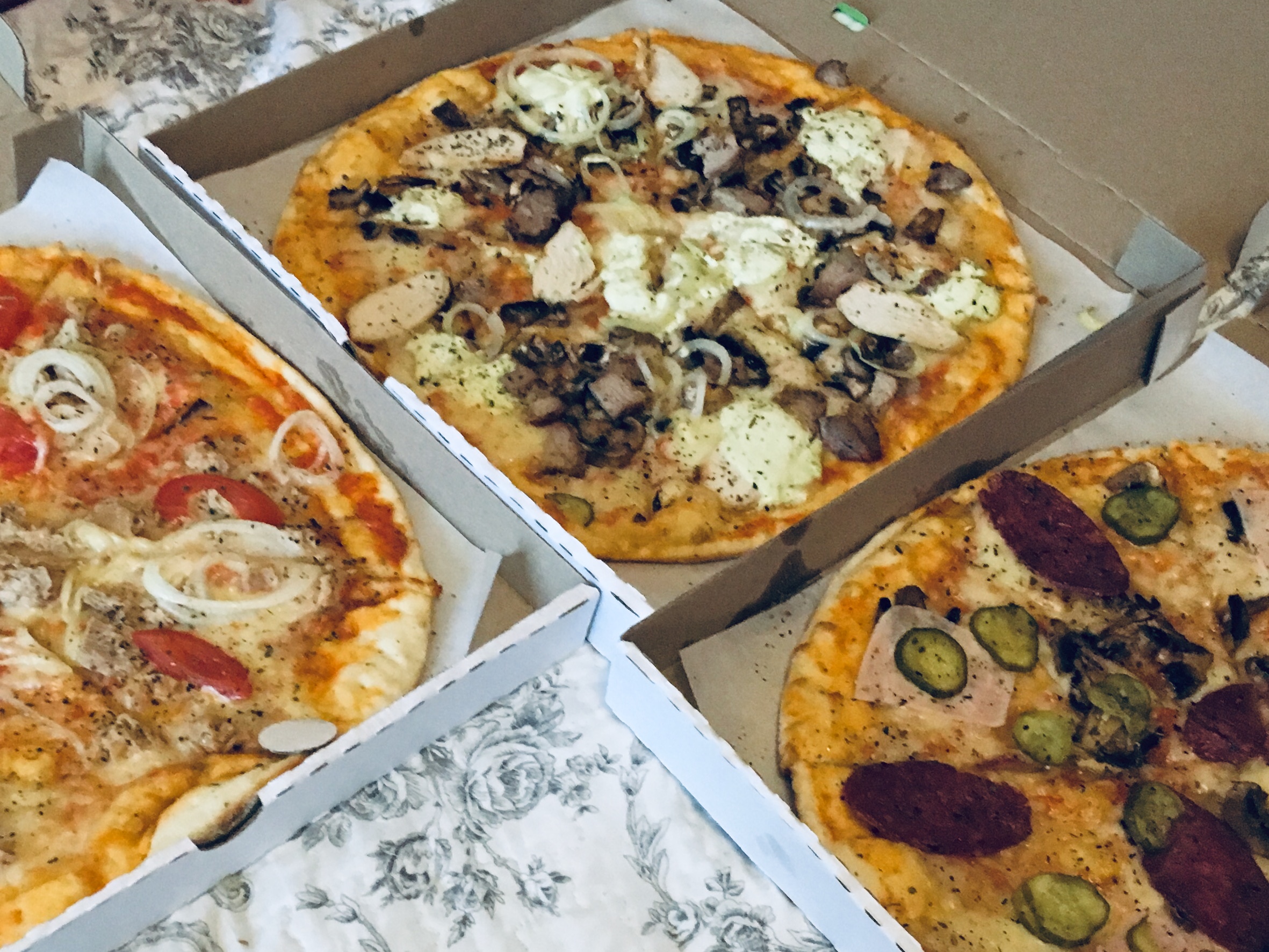 Пиццы оказались очень вкусными, поэтому мы все забыли про период одидания