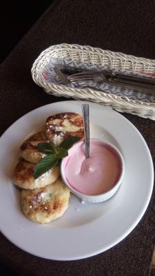 Замечательный ужин! Вкусно все: салат с печенью бесподобный, суп-пюре из кабачков выше всех похвал! Свежеиспеченные булочки - ммм ... хрустит корочка. Дряники и десерт - очень порадовали. Обслуживание на уровне дорогого ресторана. Очень рекомендую!