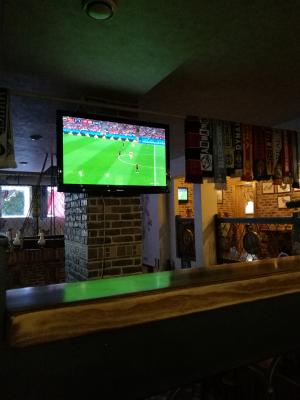 - В кафе транслируются различные спортивные соревнования: начиная от хоккея и футбола, заканчивая биатлоном и олимпиадой. Все залы заведения оснащены телевидением и хорошей звуковой поддержкой