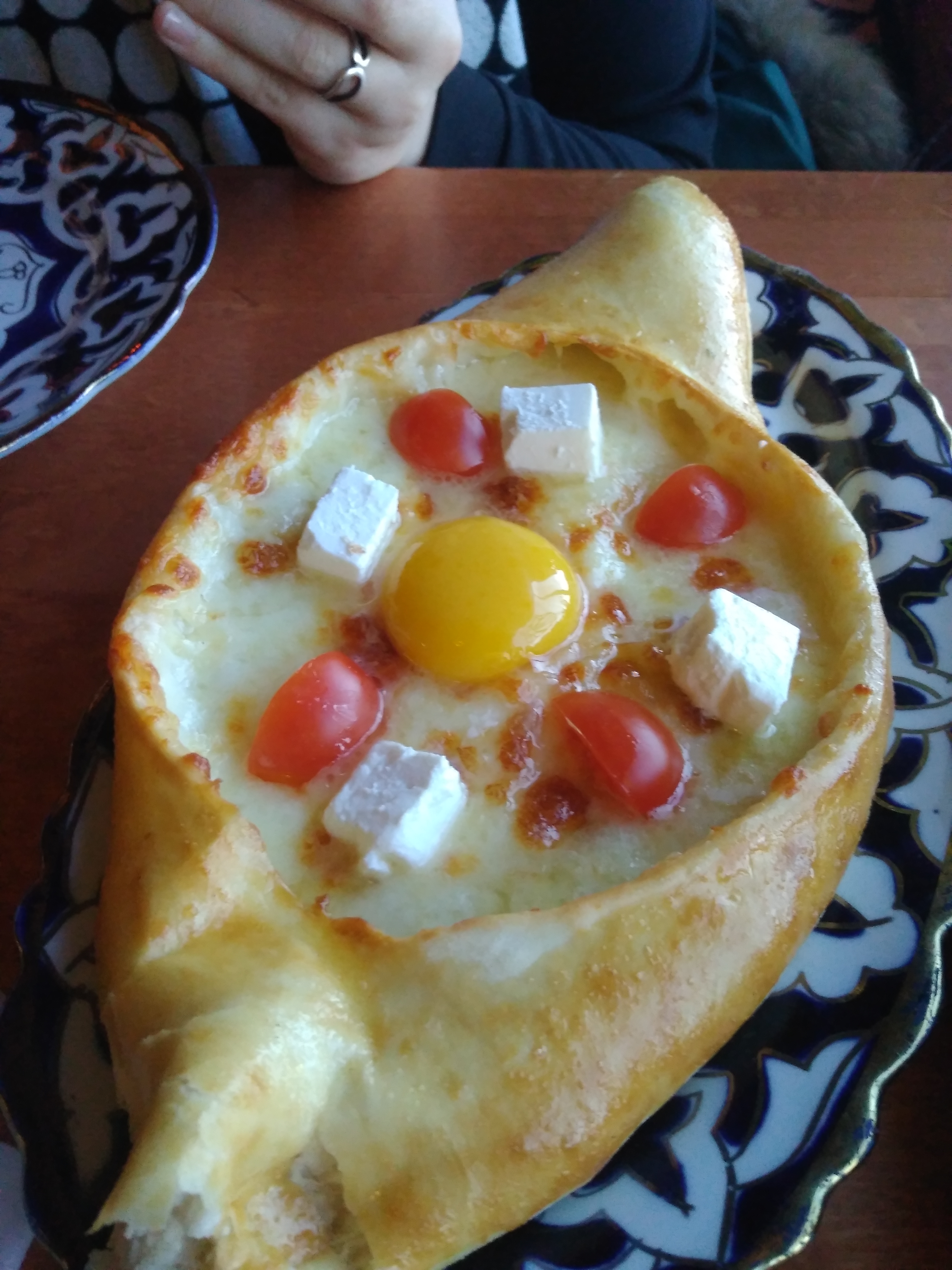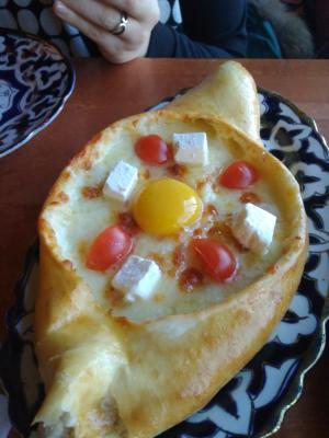 - хачапури "По-аджарски" с хумусом и помидором/с Фета и помидором/с курицей и грибами/с телятиной: 12 руб.