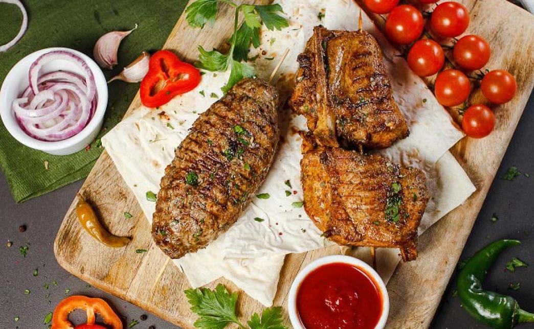 Микс из люля-кебаб и шашлыка из свиной корейки.