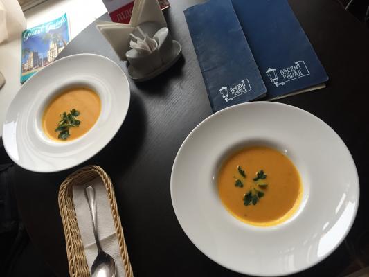 - При единовременном посещении один клиент может приобрести бесплатно только один суп на выбор.