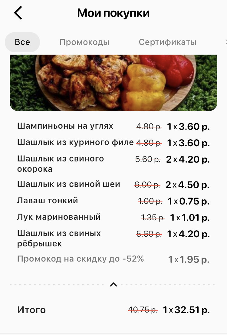 - Промокод дает право на скидку до 36% на шашлычные сеты, комбо, закуски от барбекю-доставки "Амми Вкуснятина"