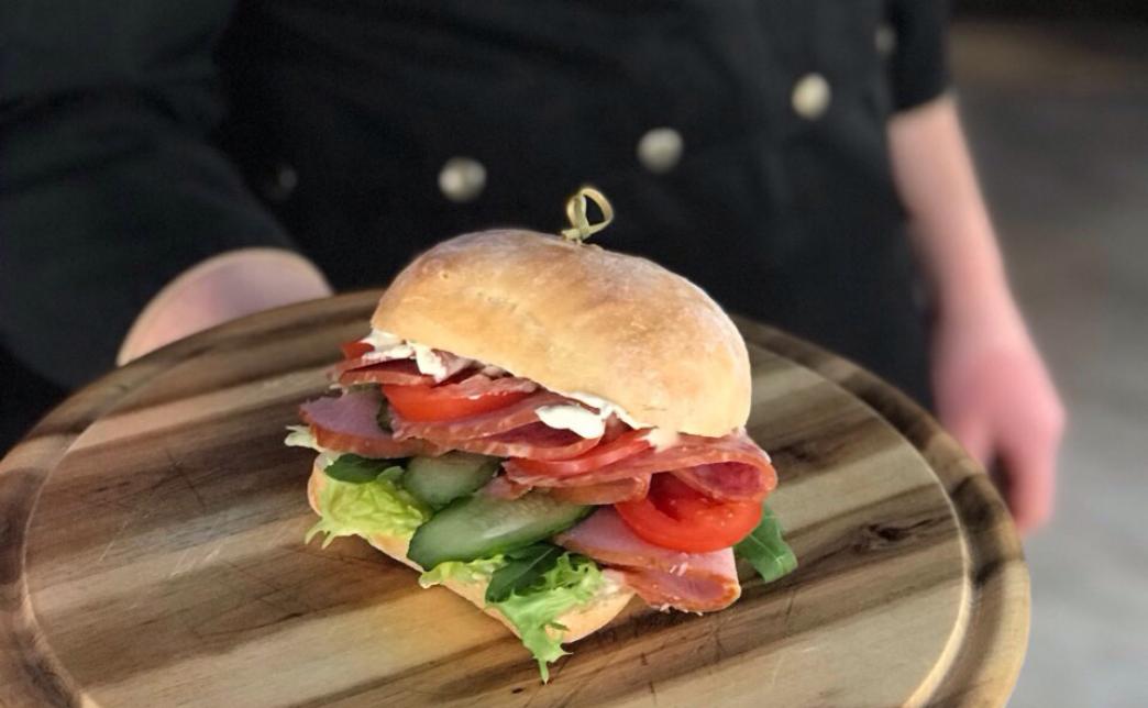 Состав: светлая чиабатта, ветчина, салями, томат, огурец свежий, микс салат, соус рэнч