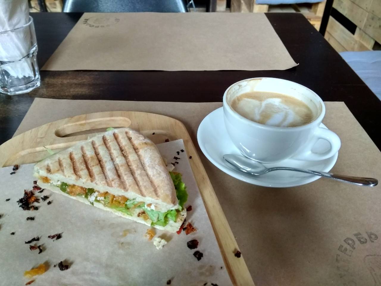 - сэндвич на чиабатте (210 г) + капучино (270 мл):