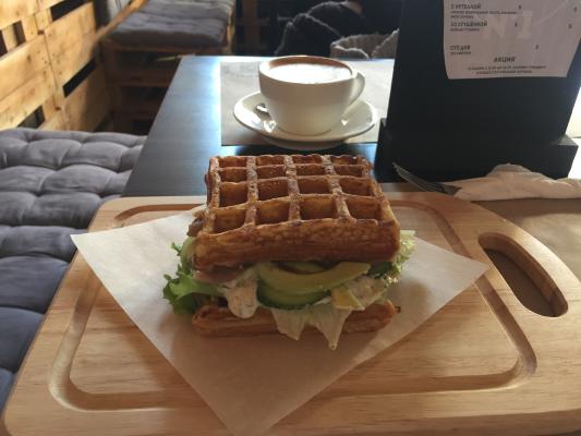 Сэндвич на венской вафле (190 г) + капучино (270 мл) 5 руб. вместо 10 руб.