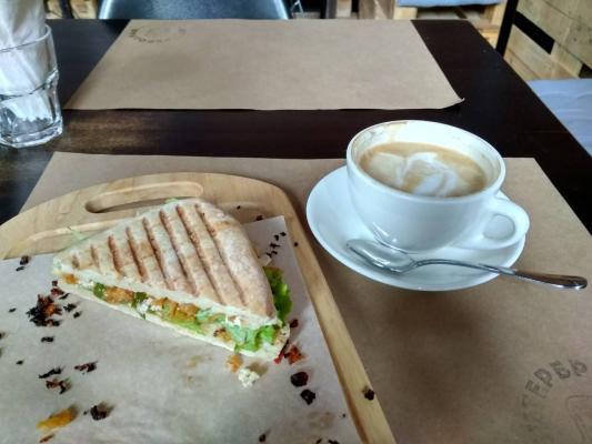 Сэндвич на чиабатте (210 г) + капучино (270 мл) 4,75 руб. вместо 9,50 руб.