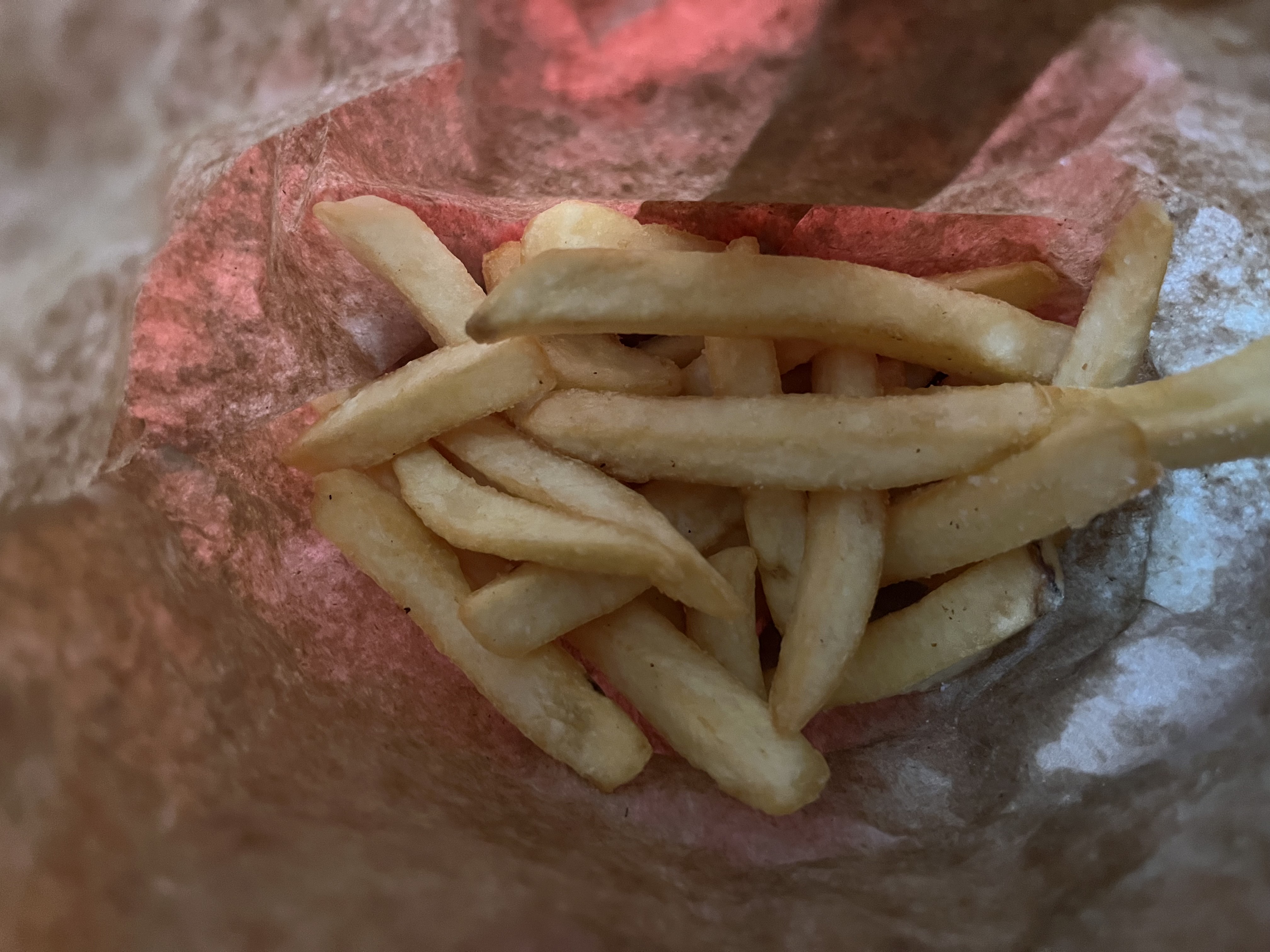 Состав: сыр, сосиски, картофель фри, соус горчичный, соус томатный