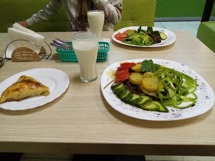 - cалат "Фаттуш", 250 г. (томат, огурцы, перец сладкий, лук, салат, масло оливковое, лимон): 10 р.