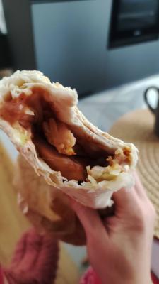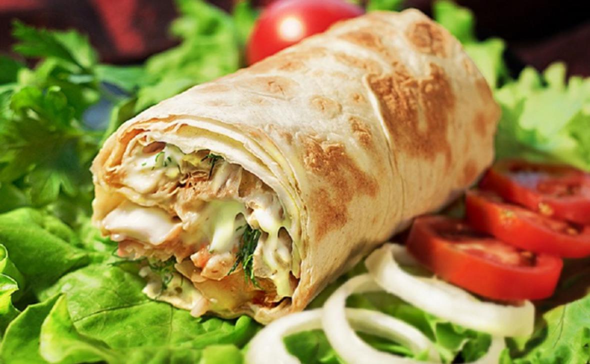Состав: лаваш, жареная курица, соусы, огурцы маринованная, капуста