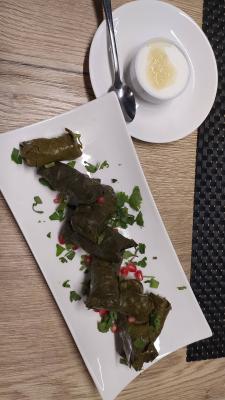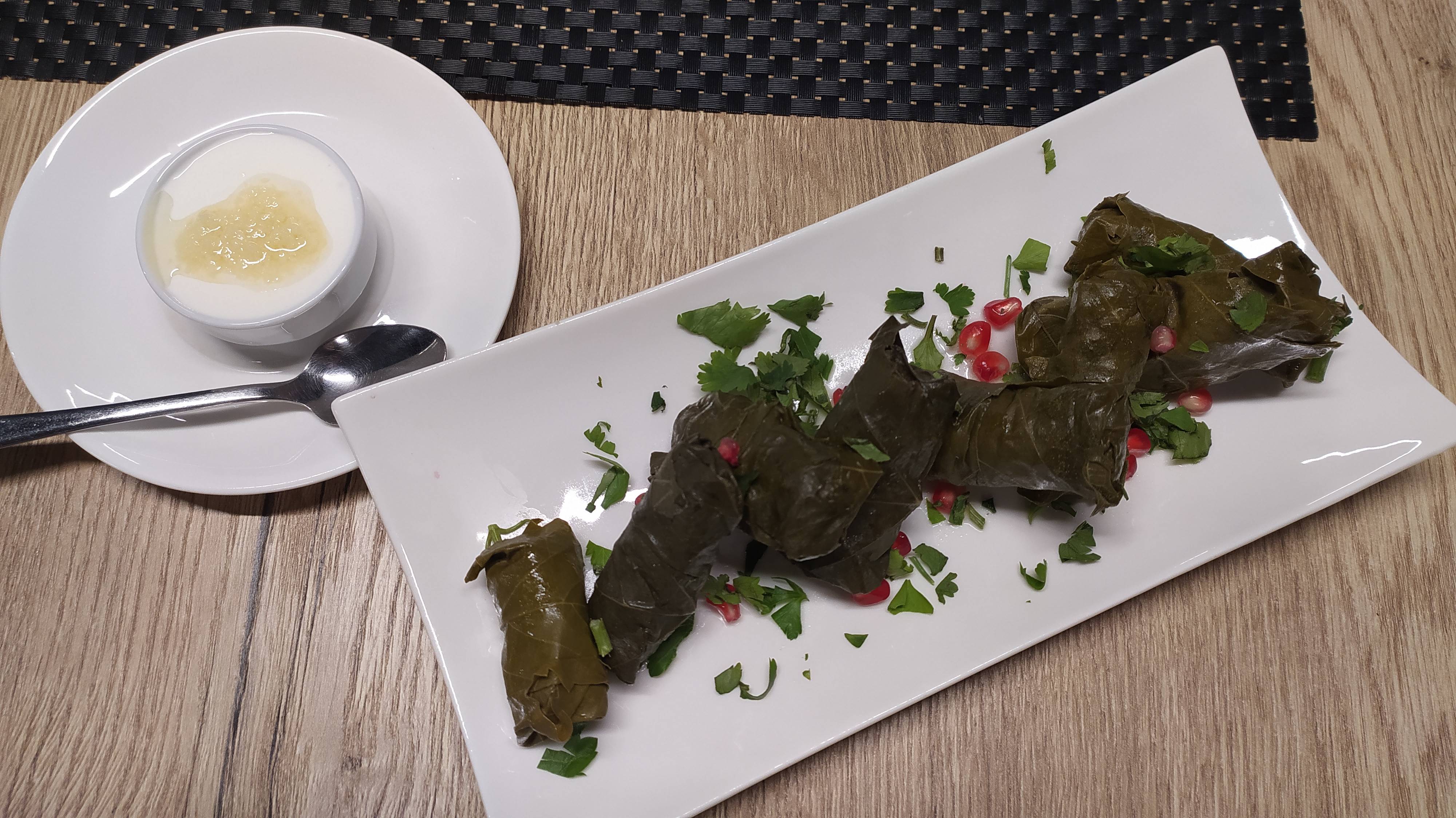 Состав: рулетики из виноградных листьев с начинкой из мясного фарша, риса и специй