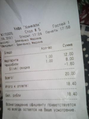 здравствуйте, пробовали хинкали классические, салат Цезарь. большое спасибо, было очень вкусно!