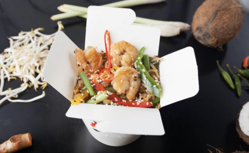 Состав: лапша стеклянная, морковь, капуста, лук, креветки, чеснок, имбирь, тайский соус, базилик
