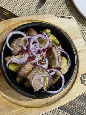 - оджахури (250 г, 1 порция): картофель, свинина, лук репчатый, гранат