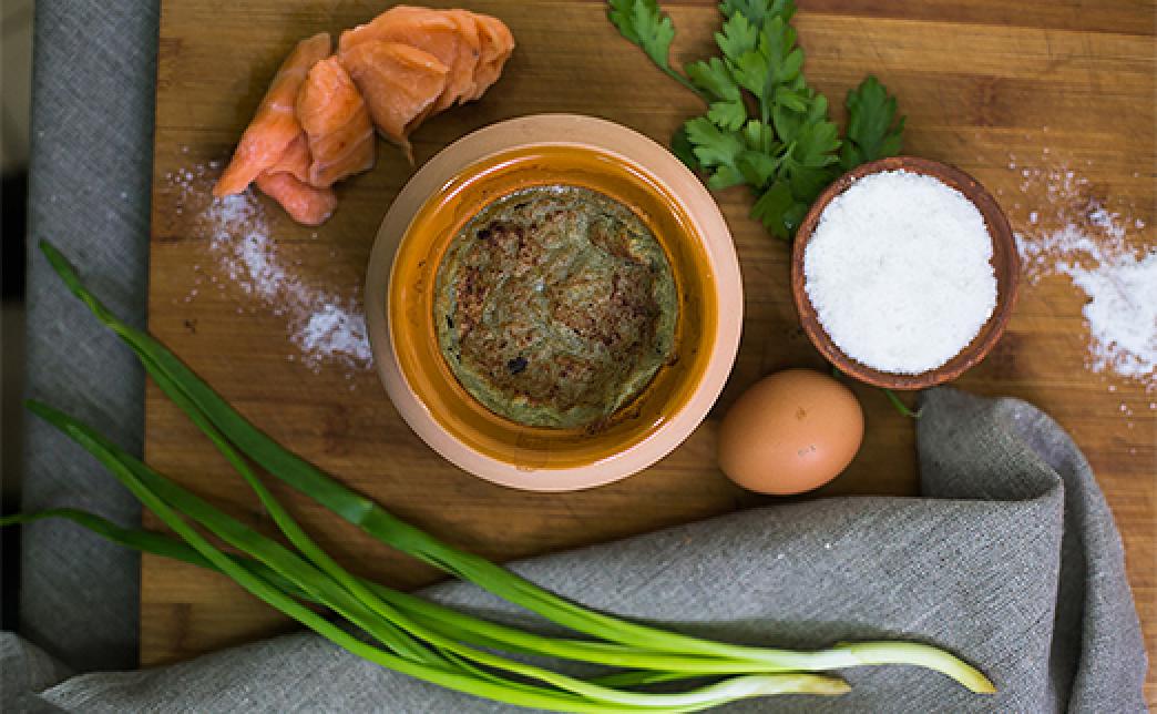 Состав: картофель, лосось, шампиньоны, лук, яйца, соль, перец. |