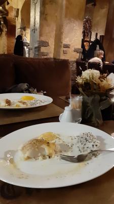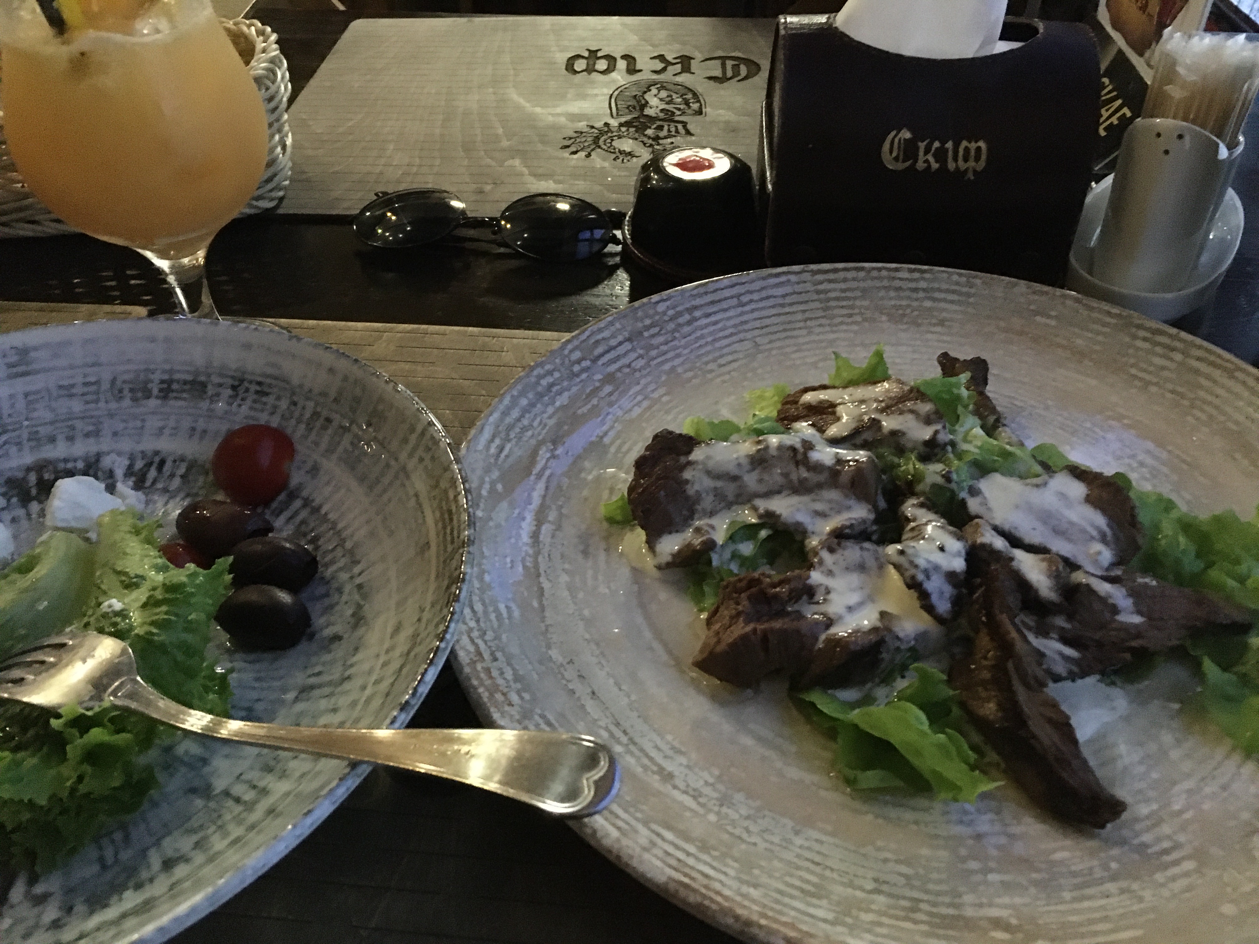 - ужин №1 (медальоны из говядины с соусом Демиглас и ризотто с трюфельной пастой + легкий салат с пармской ветчиной и сыром Дор Блю:): 35 р. 70 р.
