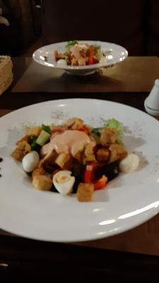 - ужин №2 (филе судака на подушке из овощного пюре + салат с тигровыми креветками и авокадо в миндальной стружке): 35 р. 70 р.