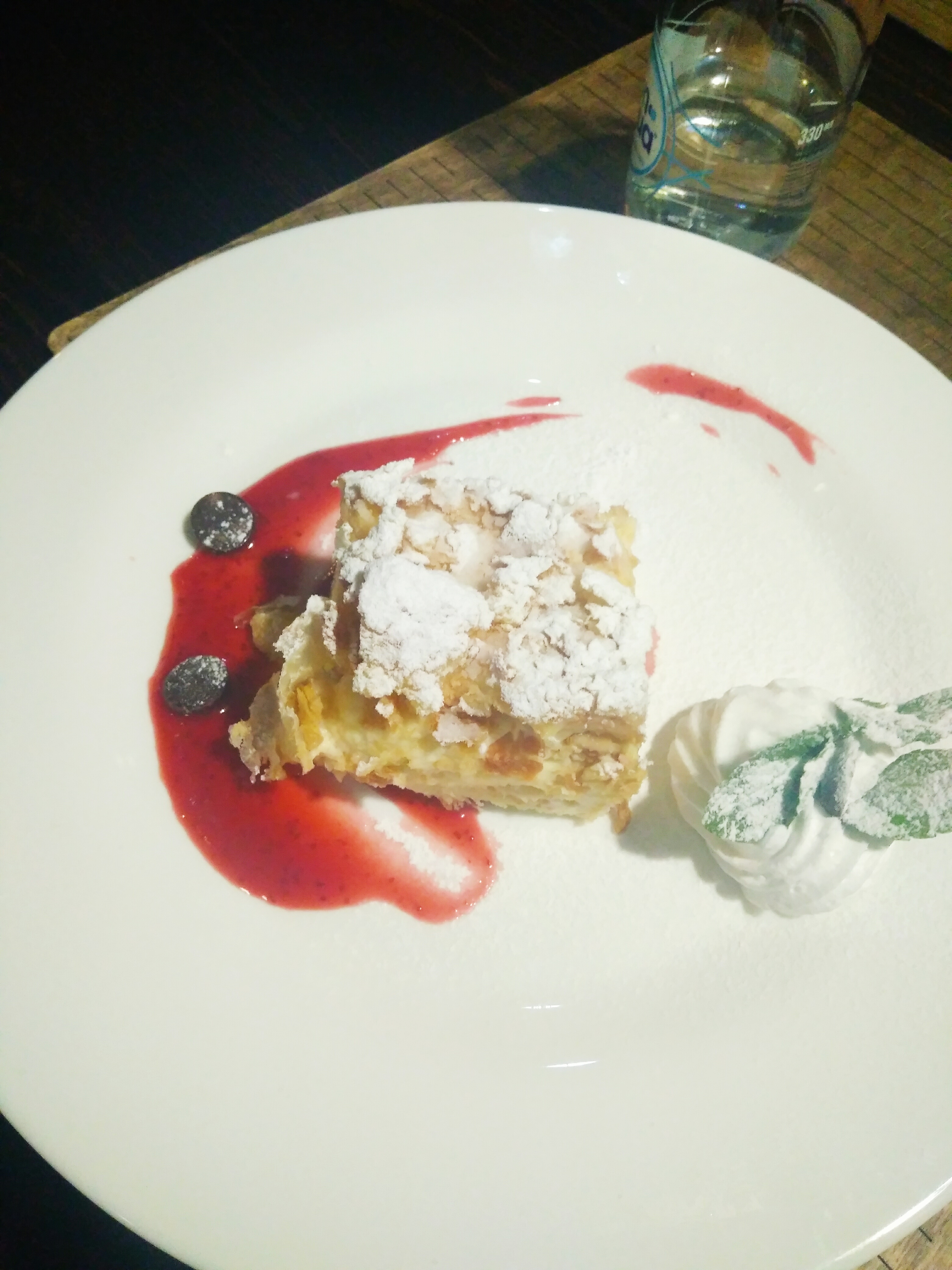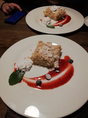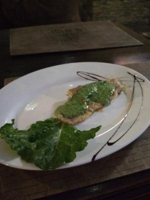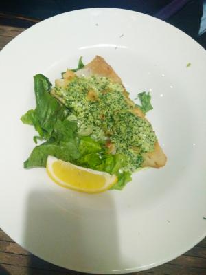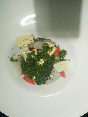 - филе судака на подушке из овощного пюре: филе судака, овощное пюре, перечный соус, свежий шпинат (280 г)